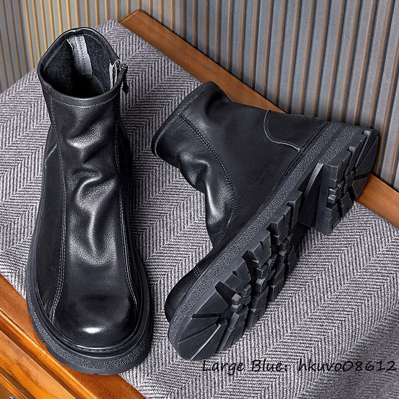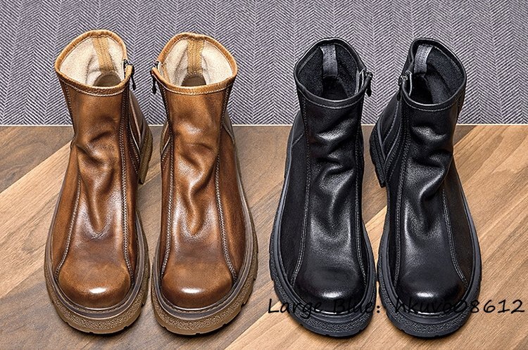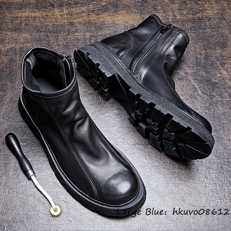 12万*超希少 牛革 マーティンブーツ ショートブーツ 本革 エンジニアブーツ ワークブーツ 職人手作り 最高級 レザーブーツ ブラック 24.5cm