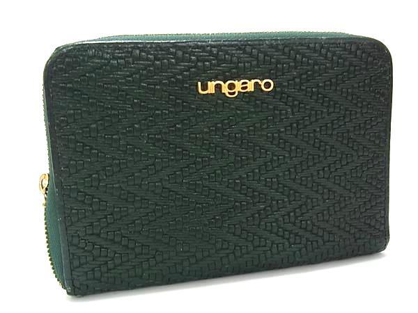 ungaro ウンガロ レザー ラウンドファスナー 長財布 ウォレット 札入れ 小銭入れ レディース グリーン系 DJ1307