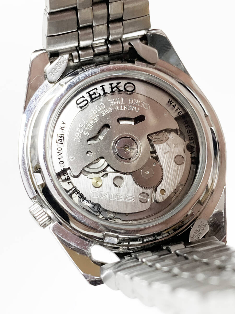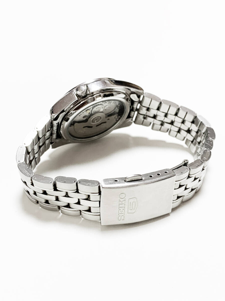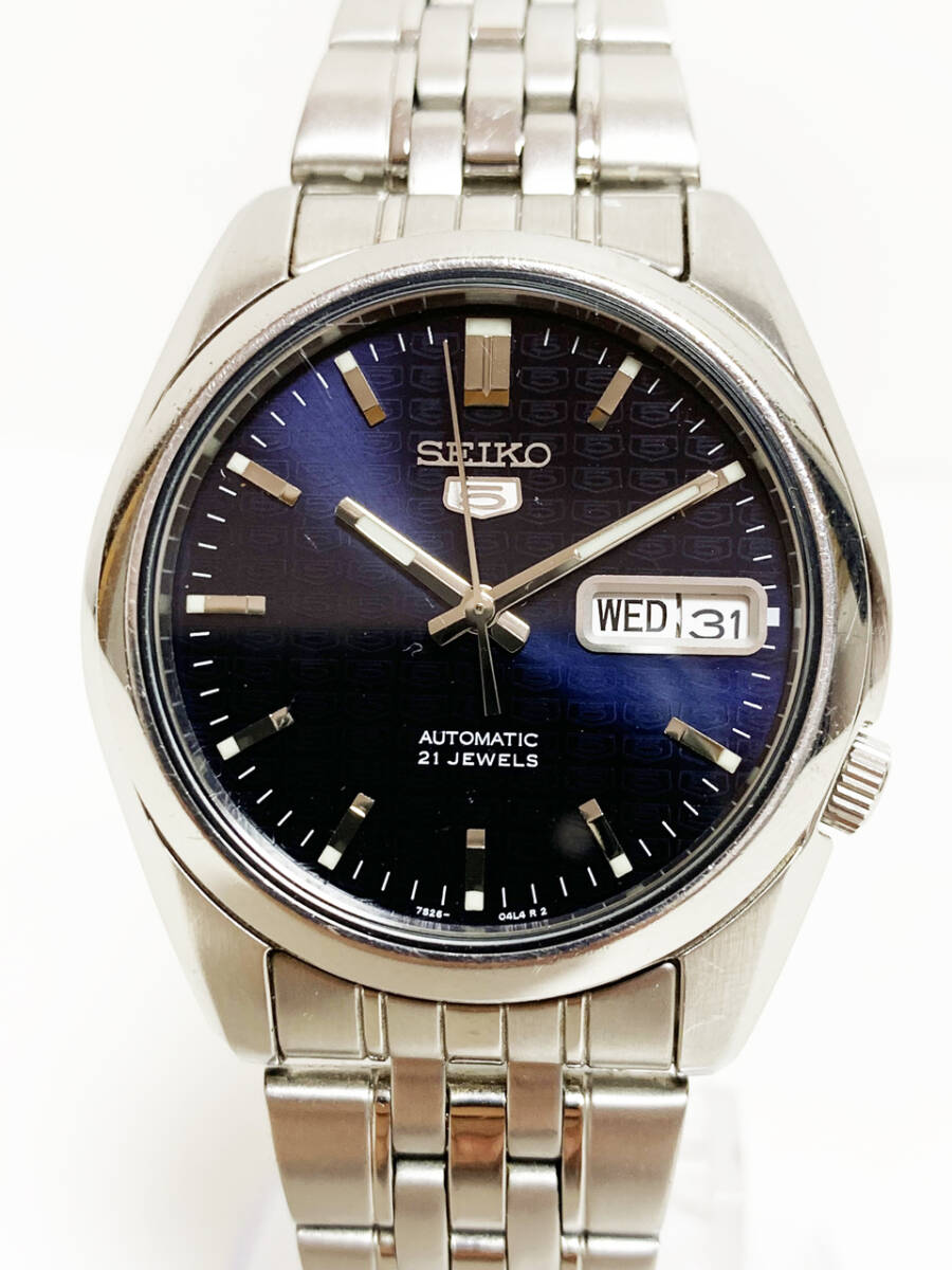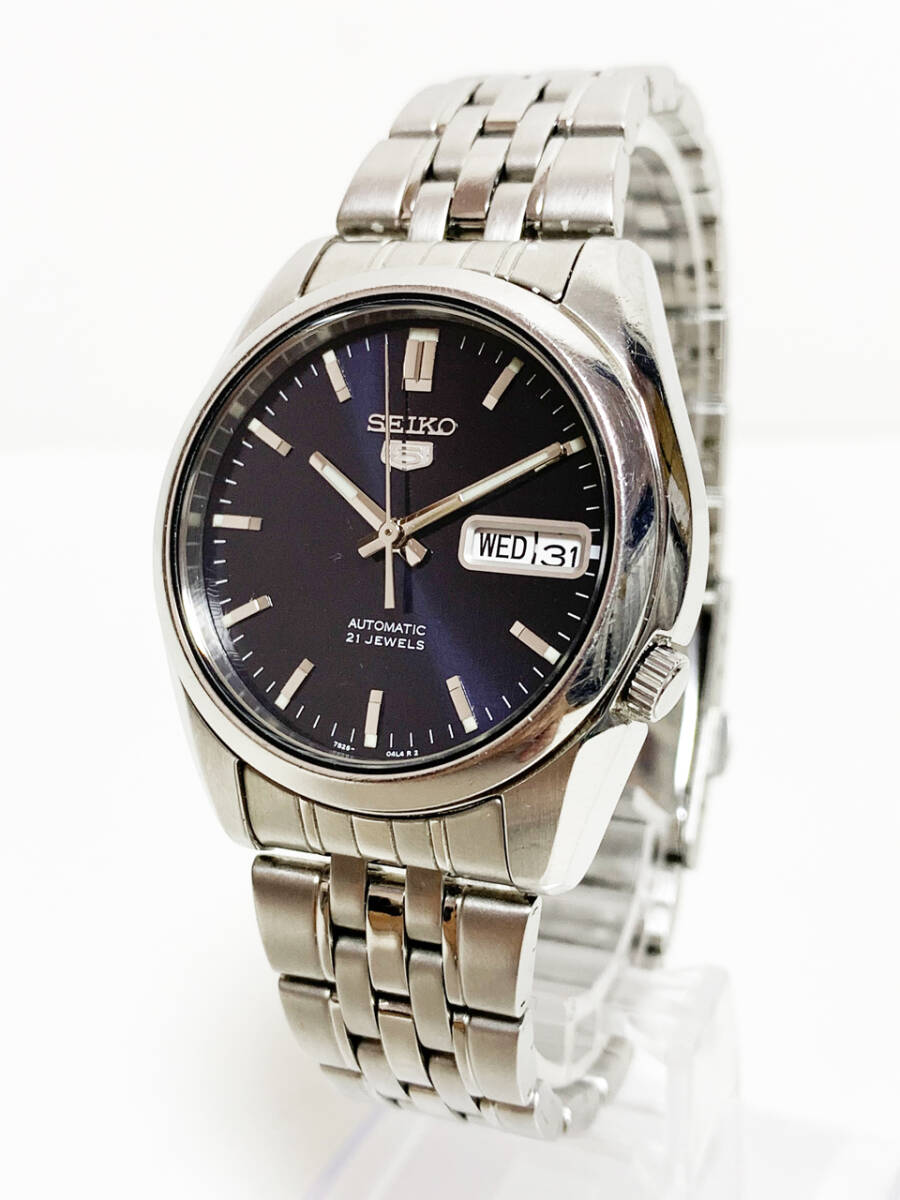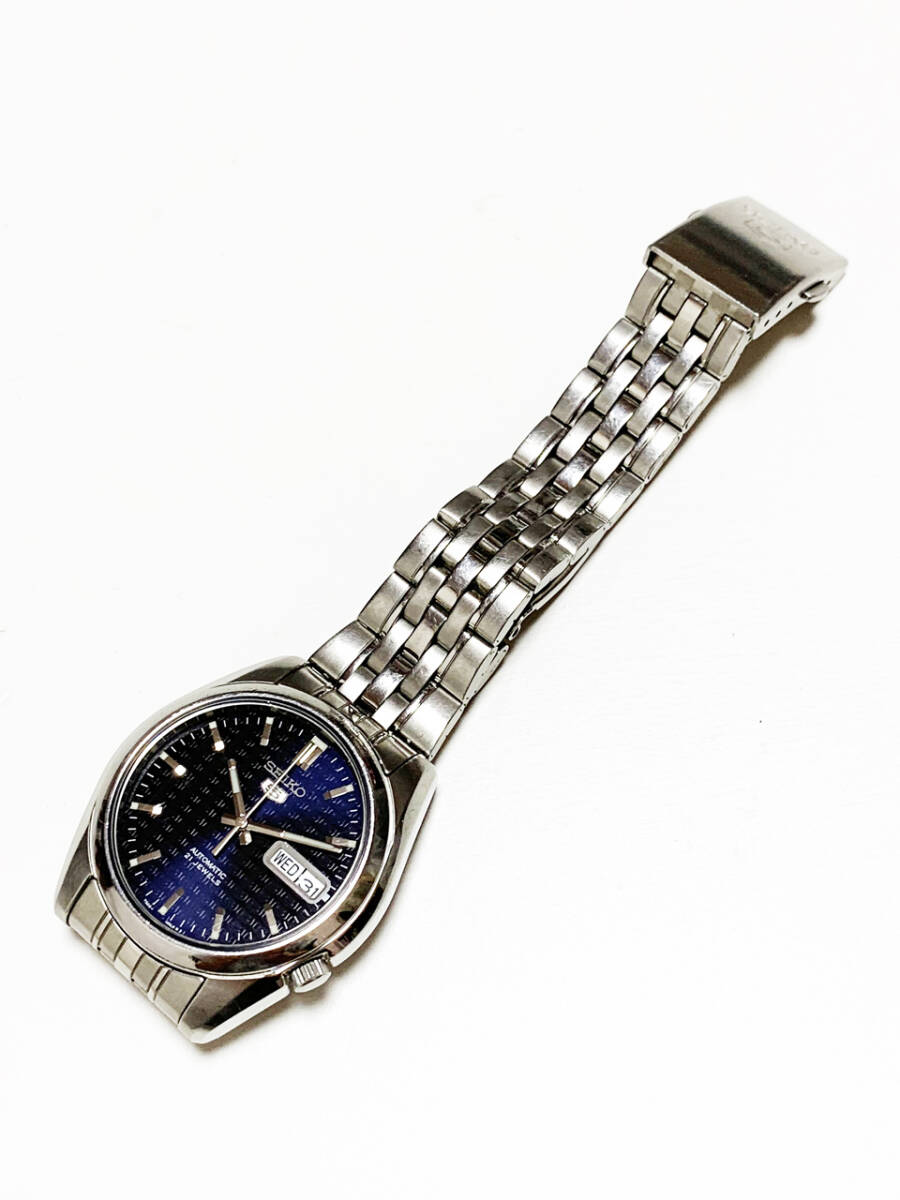 稼働品 SEIKO 腕時計 セイコー 5 ファイブ 7S26-01V0 AUTOMATIC 自動巻き 裏スケ 21石 純正ベルト デイデイト ラウンド ネイビー文字盤