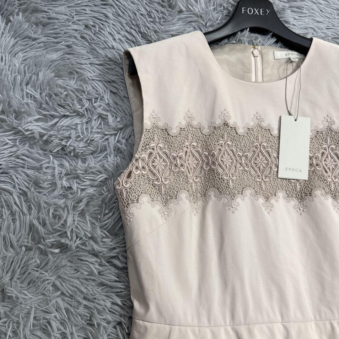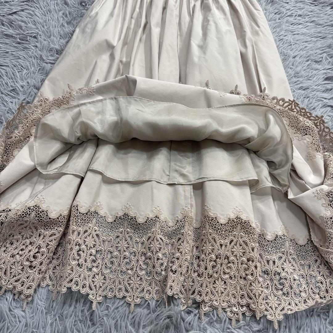 グログランタフタの重厚感がレースの繊細な表情を引き立てます。