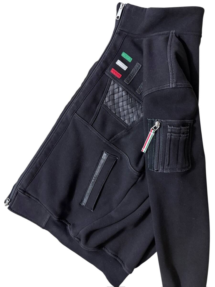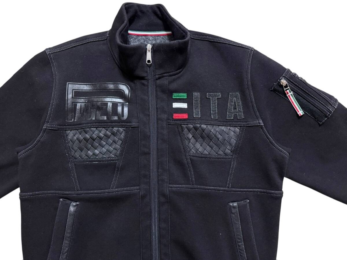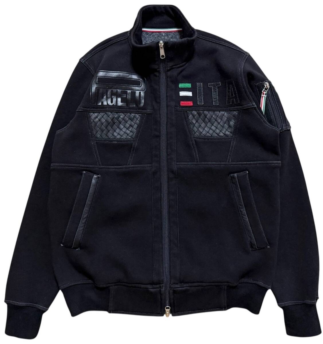PAGELO パジェロ イタリア 編み上げレザー 裏起毛 ライダース風 フライトジャケット風 ジップアップジャケット M ブラック