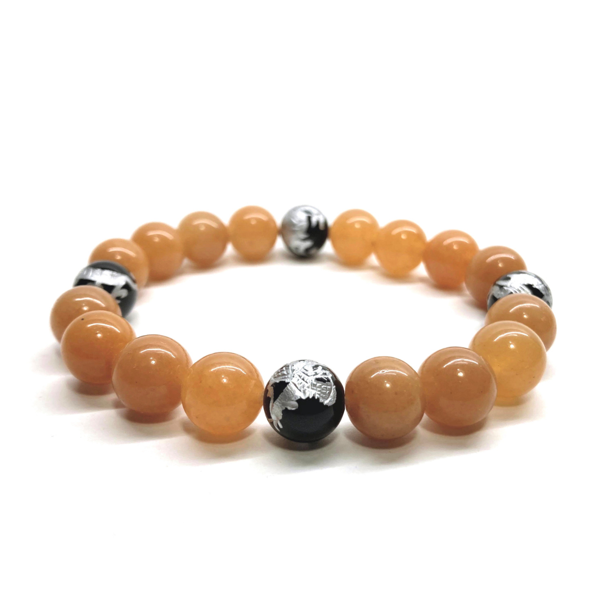 こちらは、四神獣銀彫オニキスとレッドアベンチュリンを組み合わせたパワーストーンブレスレットです。四神獣は、中国の伝説で4つの方向(東西南北)を守護する神聖な神。四神獣、厄災から身を守り、多くの運気を呼び込むと言われております。石大きさは程よくインパクトのある10mm玉で内周 約17cmです。 数に限りがございますので気になる方はお早めにどうぞ。