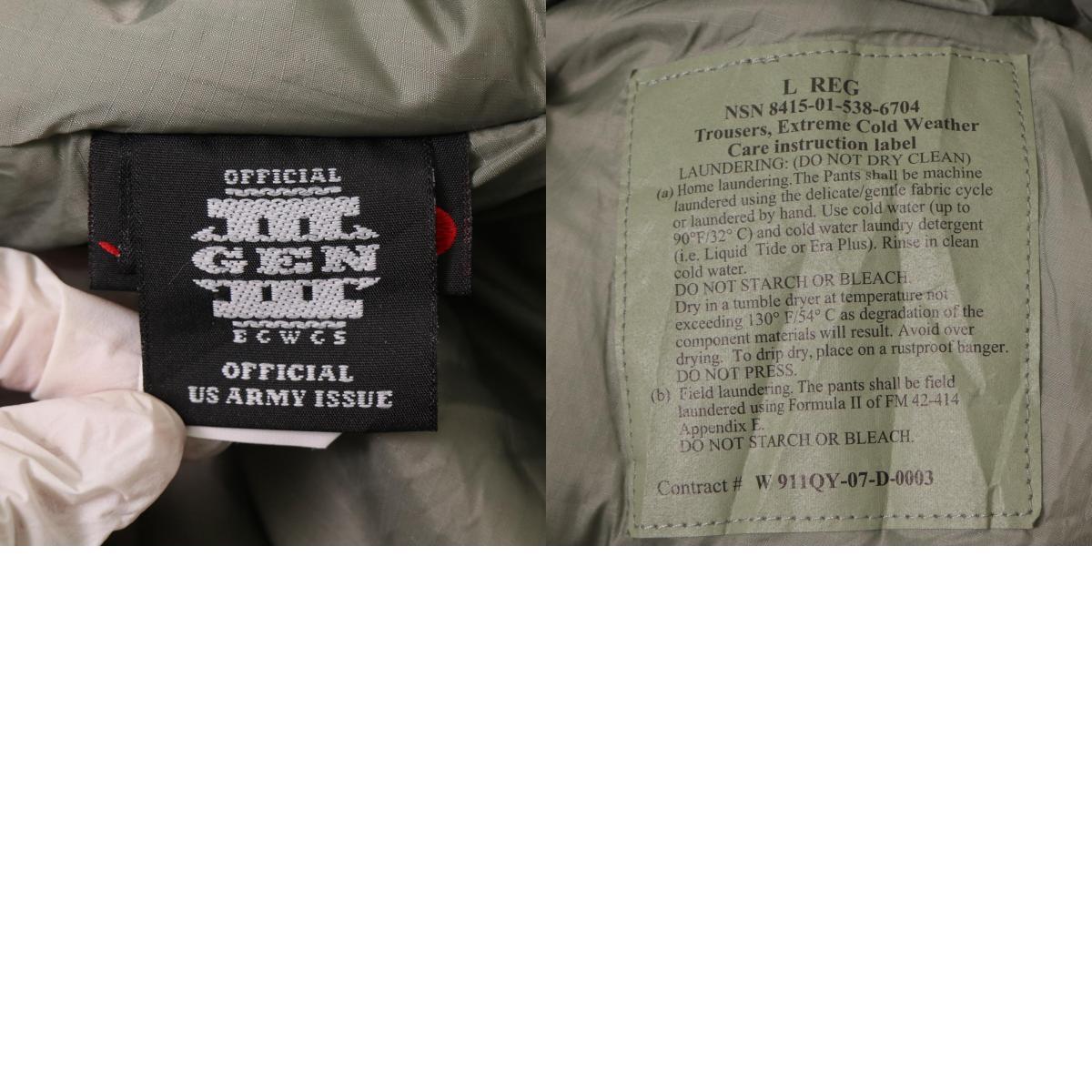 | 【商品管理番号】 A1603 【ブランド】 /米軍実物 U.S.ARMY 【サイズ】 LARGE REGULAR 【実寸サイズ】 ウエスト(調整可能):約93cm 股上:約34cm 股下:約69cm わたり幅:約43cm 裾幅:約19cm 【主な素材】 表地 : ナイロン 裏地 : 13848 中綿 : 13897 【色】 グレー 【仕様】 00年代 2007年 PRIMALOFT ミリタリー ECWCS GEN3 level7 中綿 【状態】 特記事項: 数箇所に極わずかな小さな汚れ、左裾にわずかな糸のつれがございます。着用に問題はございません。 | |||