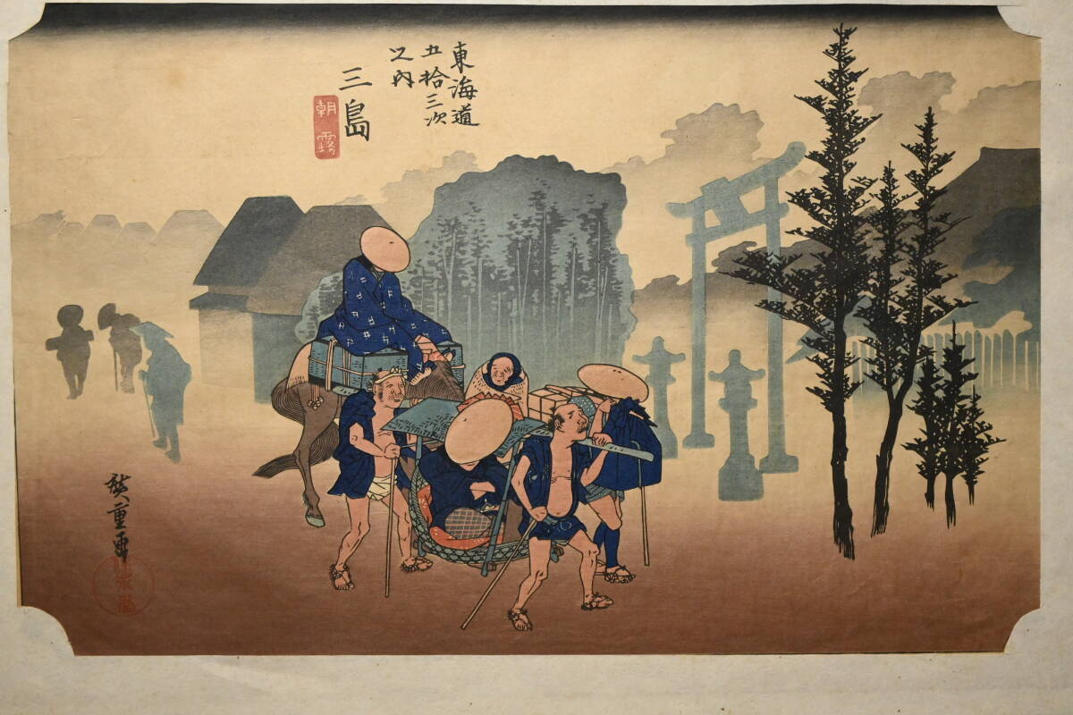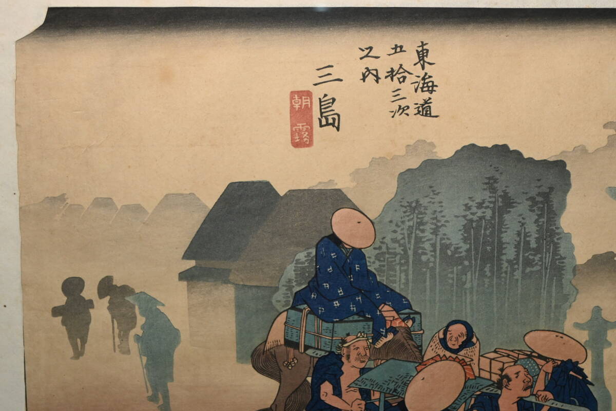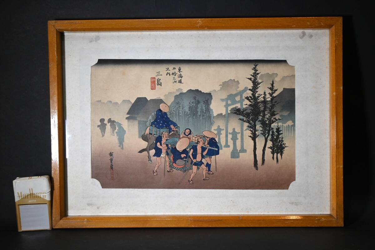 歌川広重 木版画【東海道五十三次之内 三島 朝霧】手摺 復刻 極印 浮世絵 額装 錦絵 東海道五拾三次 宿場町 | |||