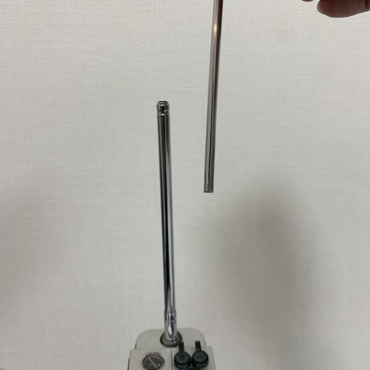 同じく右側のトランシーバーの伸ばす部分は、伸ばすと途中で抜けてしまうことがあります。(写真9枚目)