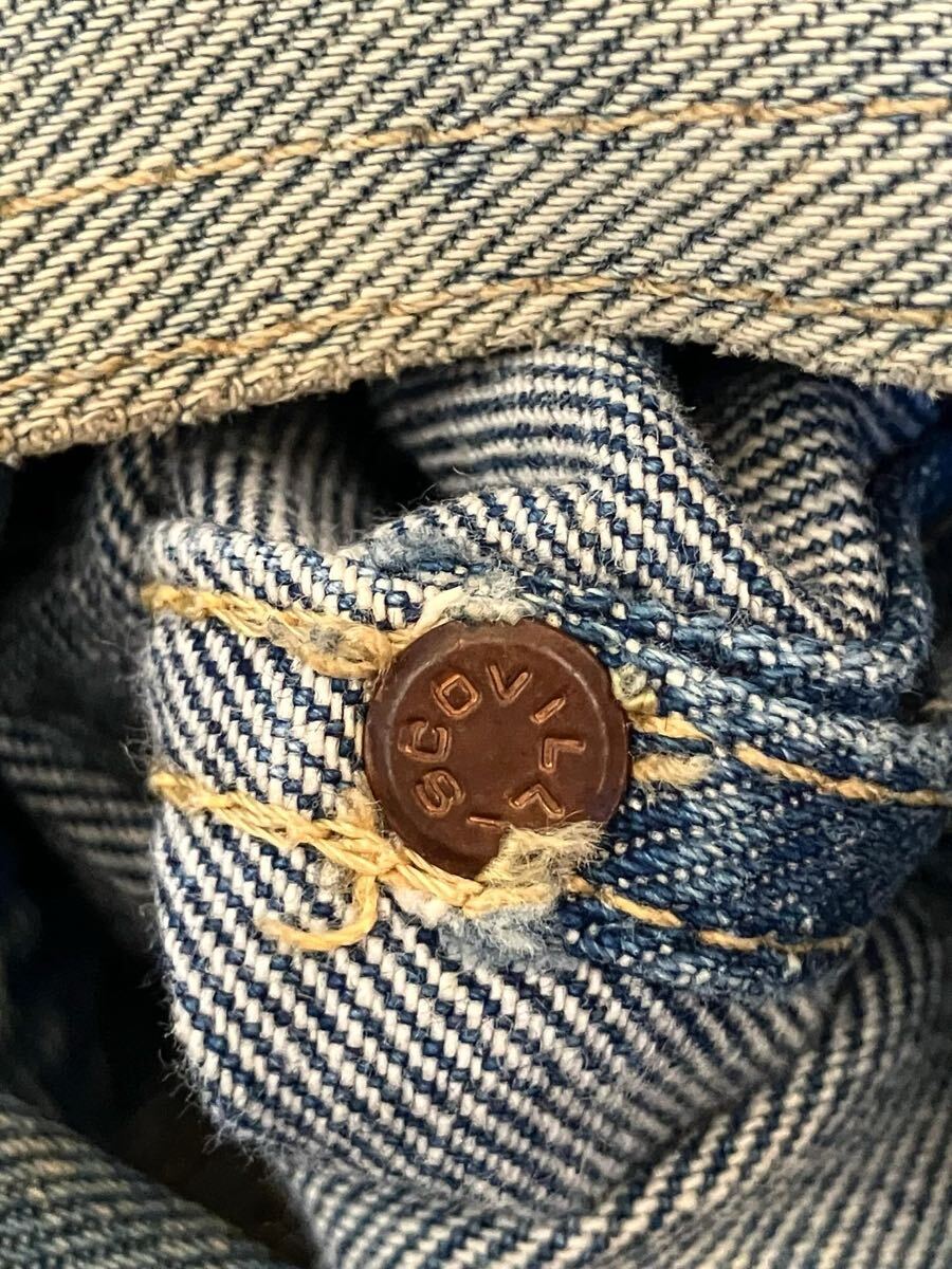 デニムの質感や縦落ちの風合い、縫製の雰囲気まで忠実に再現されており、着込むほどに“本物”の味わいが増していきます。スコービル社製リベットを採用している点も特筆すべきディテール。アメリカの老舗パーツメーカーによるリベットが、当時の空気をリアルに再現しています。