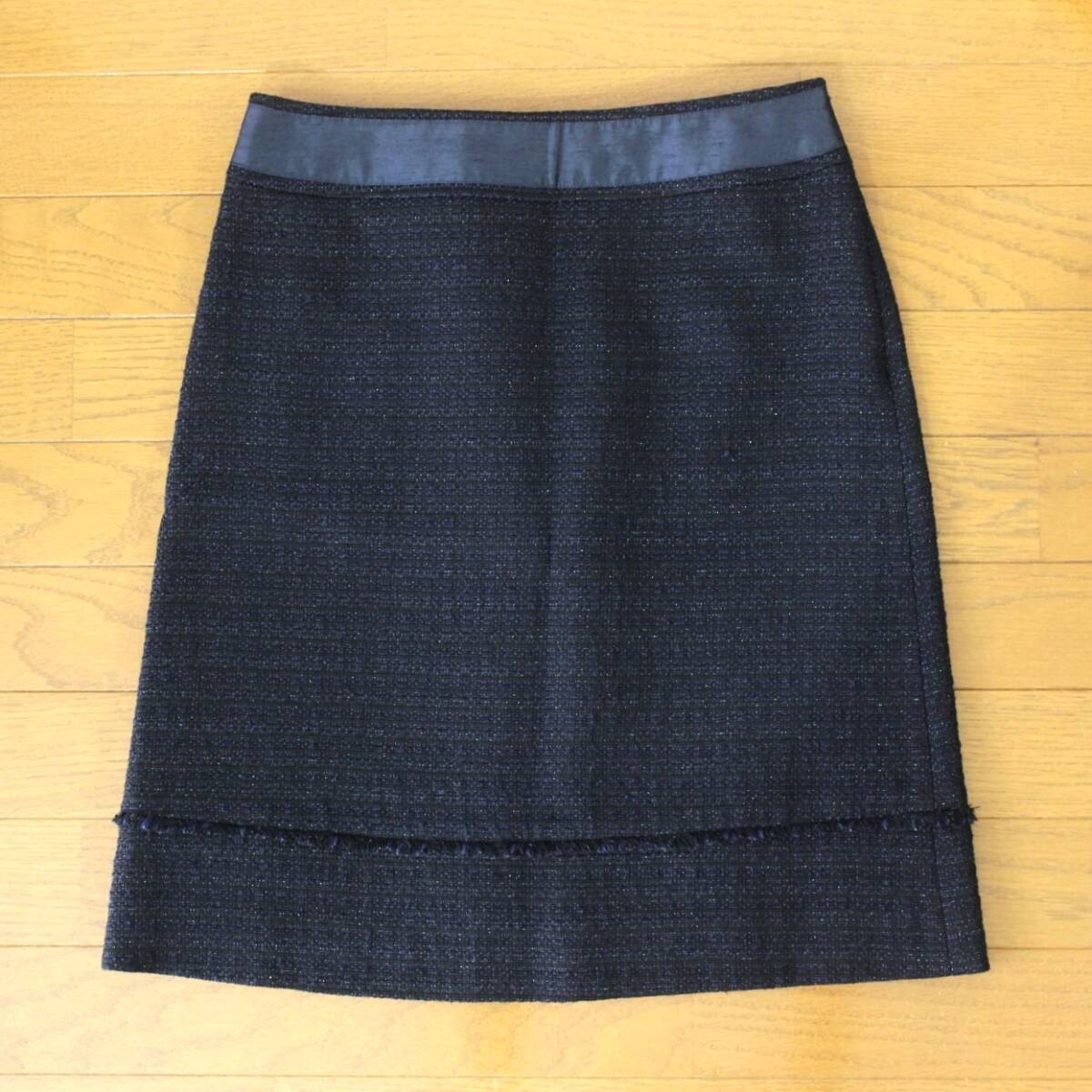 21【極美品】ユナイテッドアローズ スカートスーツ 上40 下38 ネイビー 紺 L M ツイード tqe UNITED ARROWS 秋冬春 ★未使用に近い極美品★