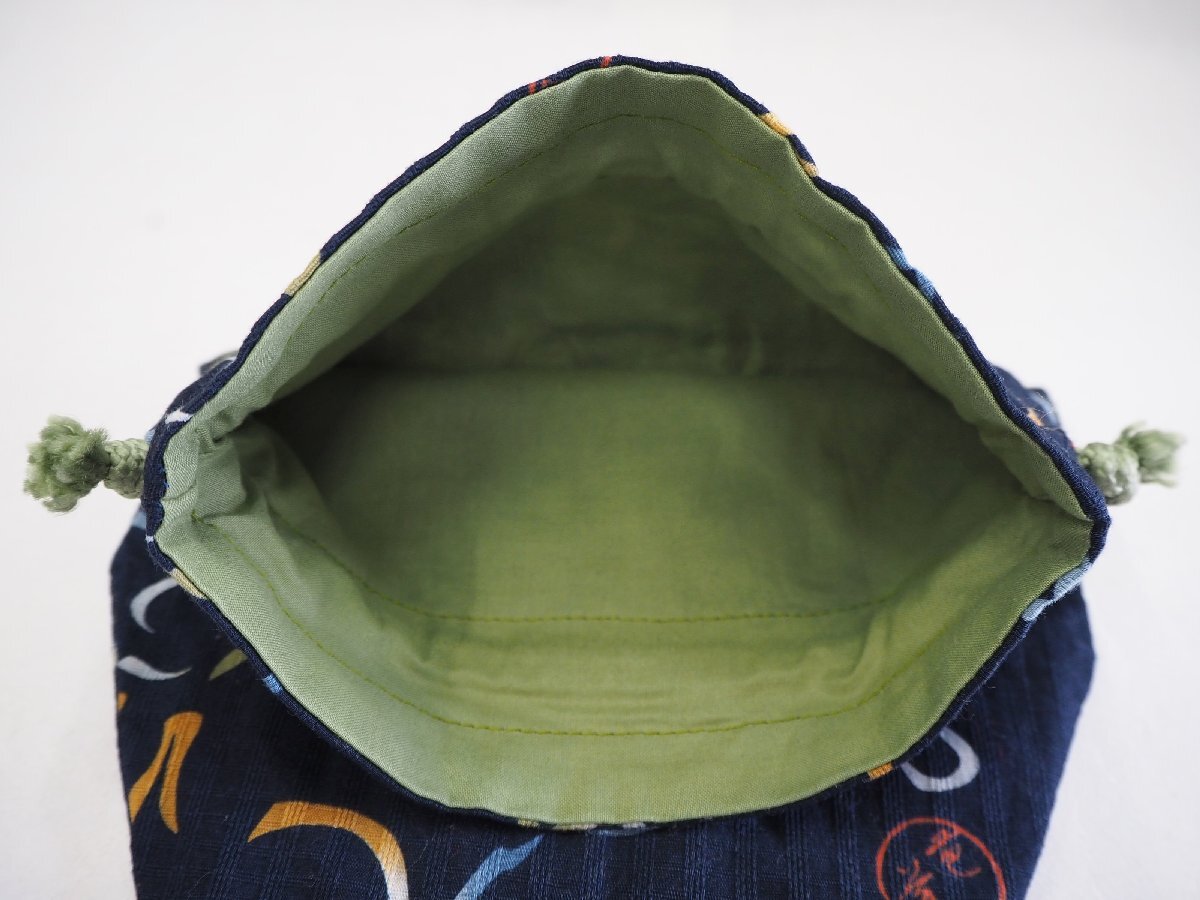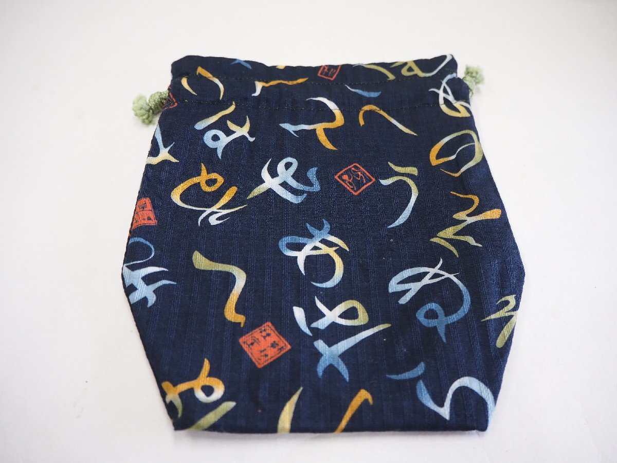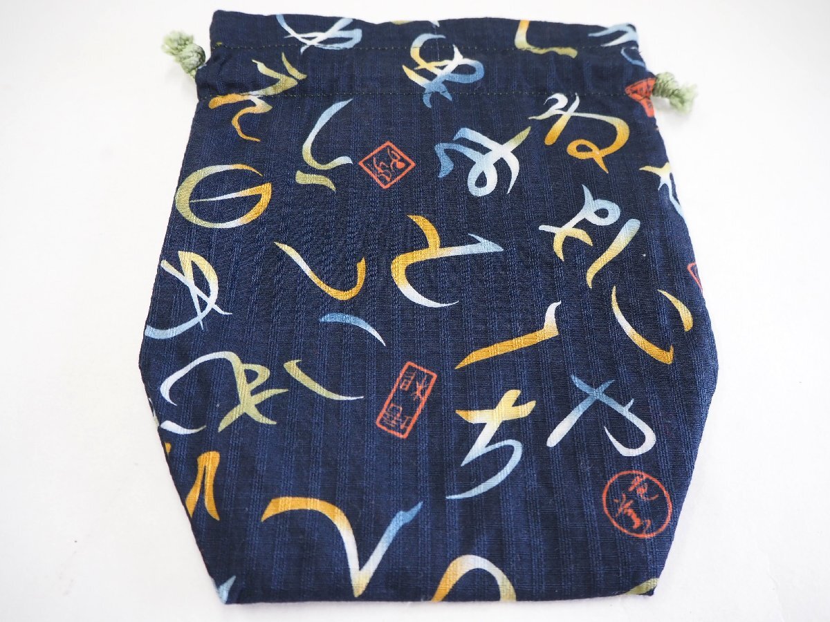 ★☆ ハンドメイド【 巾着 和柄 裏付 マチ無(表:アルファベット、裏:オレンジ色) 】手作り 小物入 ポーチ ☆★