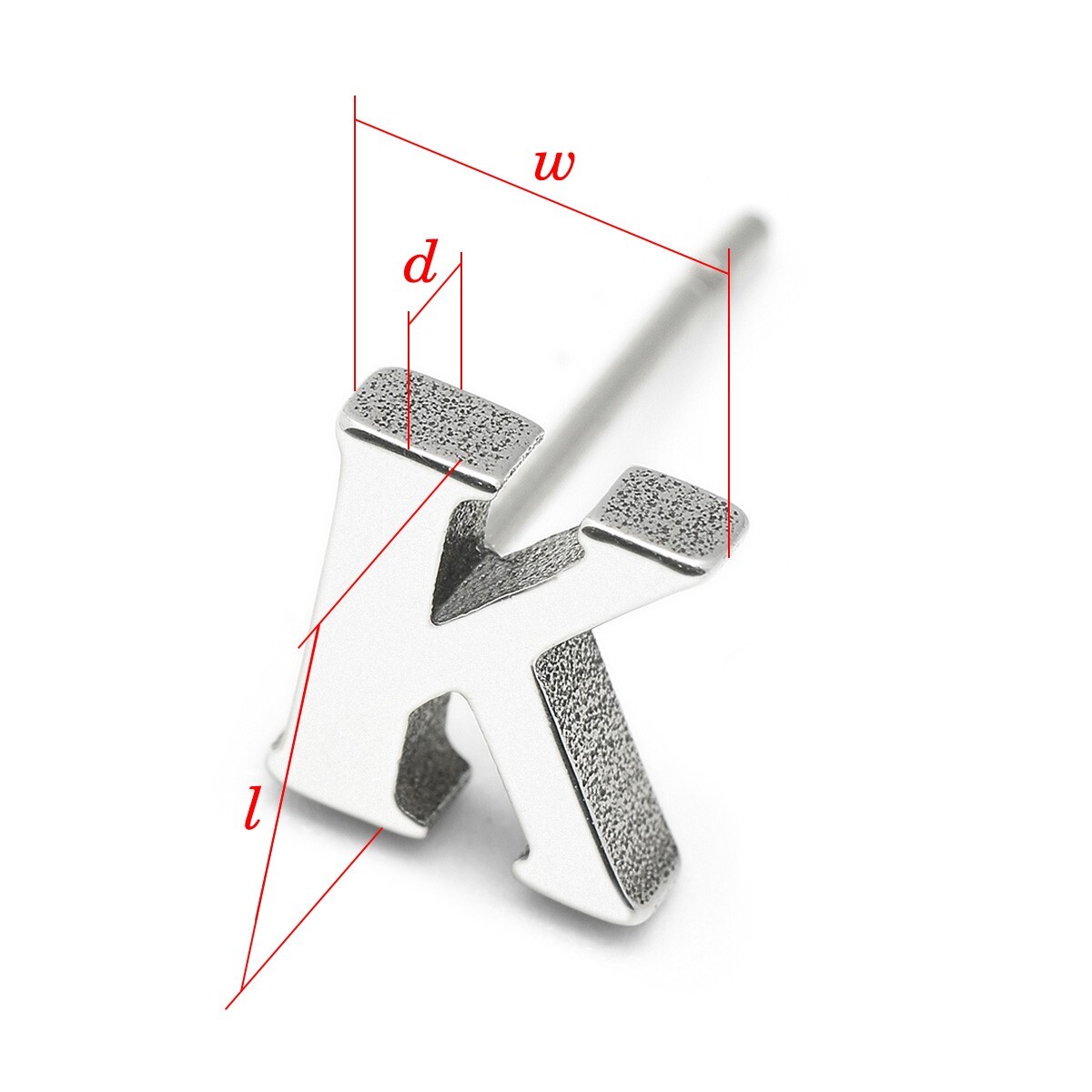 | ステンレス製のちょうど良いサイズのアルファベット文字をモチーフにしたピアスです。 飽きの来ないデザインのフォント(書体)で、末永くお使い頂ける人気のイニシャルピアスです。 ※当商品は1個づつ販売の「バラ売り商品」です、ペアではございません。 |