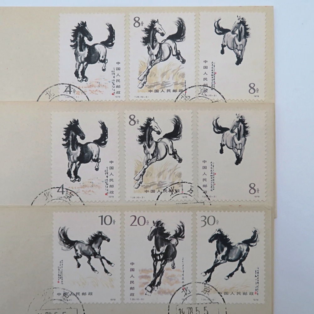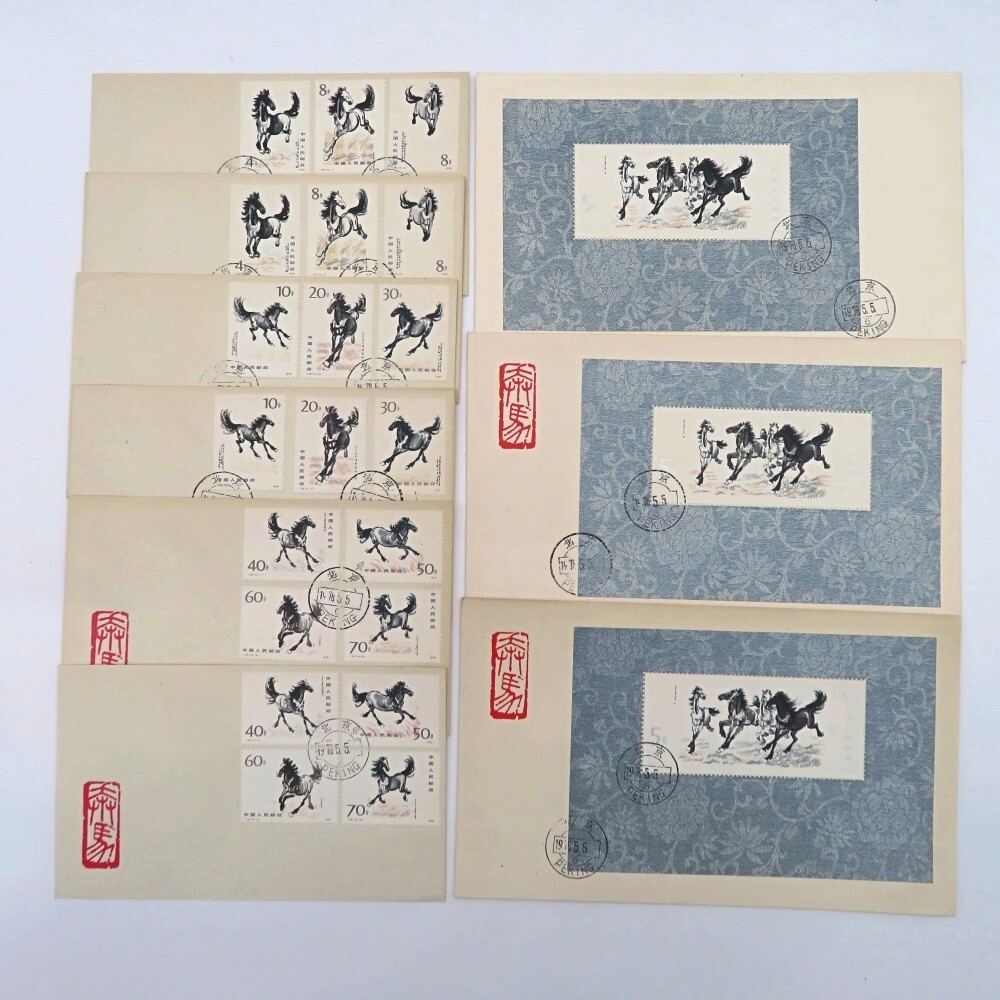 商品名 | 1円〜 中国切手 T28/T28m 「徐悲鴻<奔馬>」10種完 FDC/初日カバー 小型シート 4180731 |