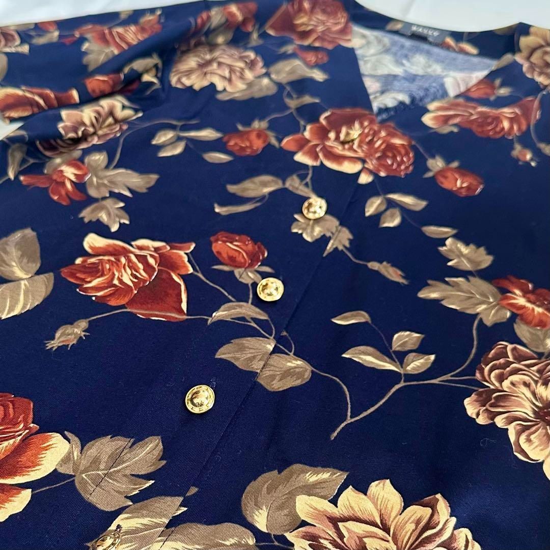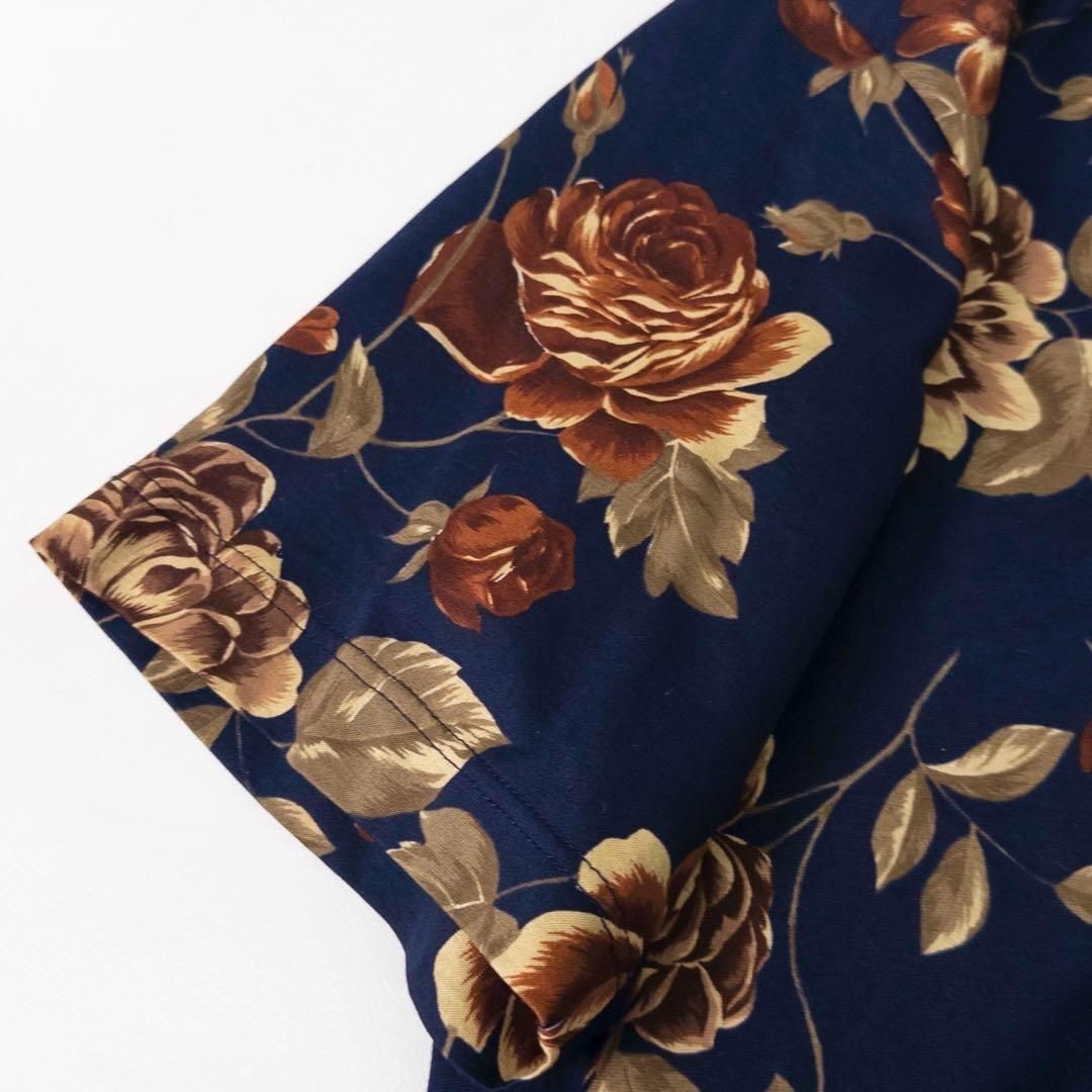 ・コットン素材のエレガントな大柄のフラワー柄、上品で華やかなアイテム