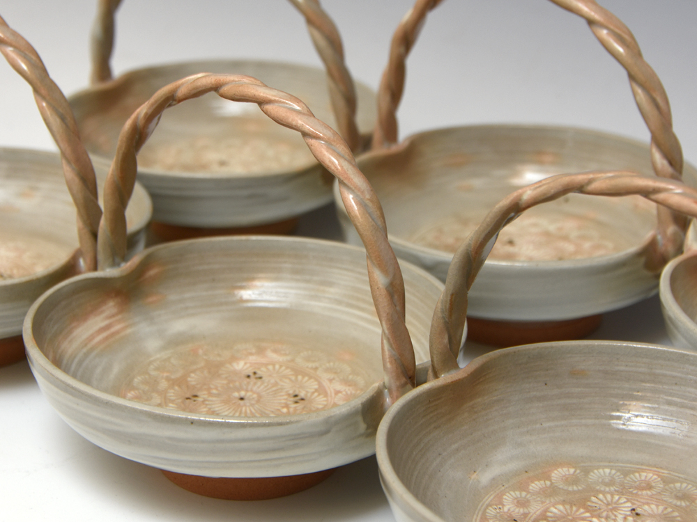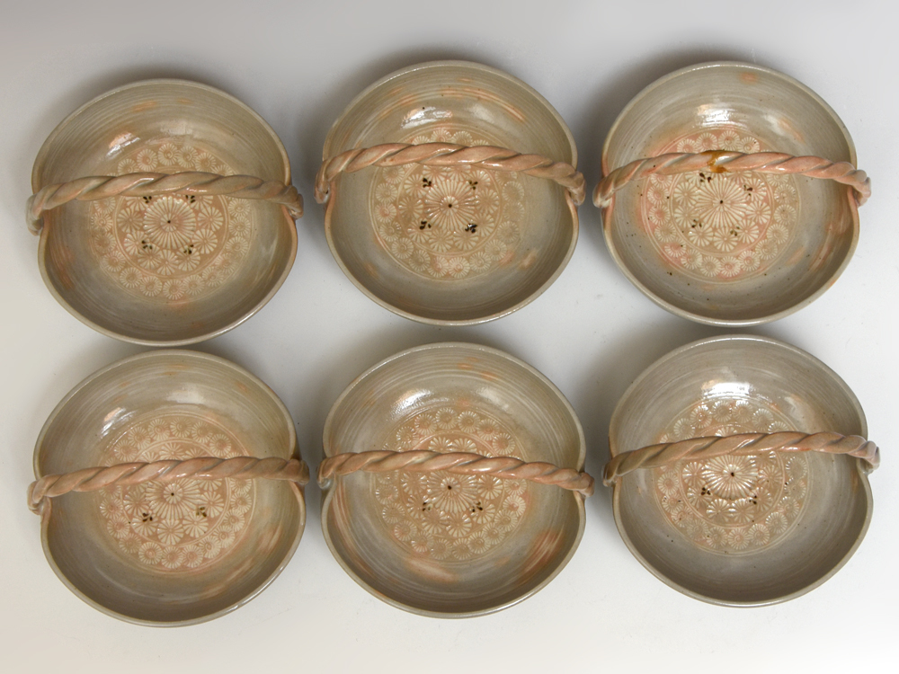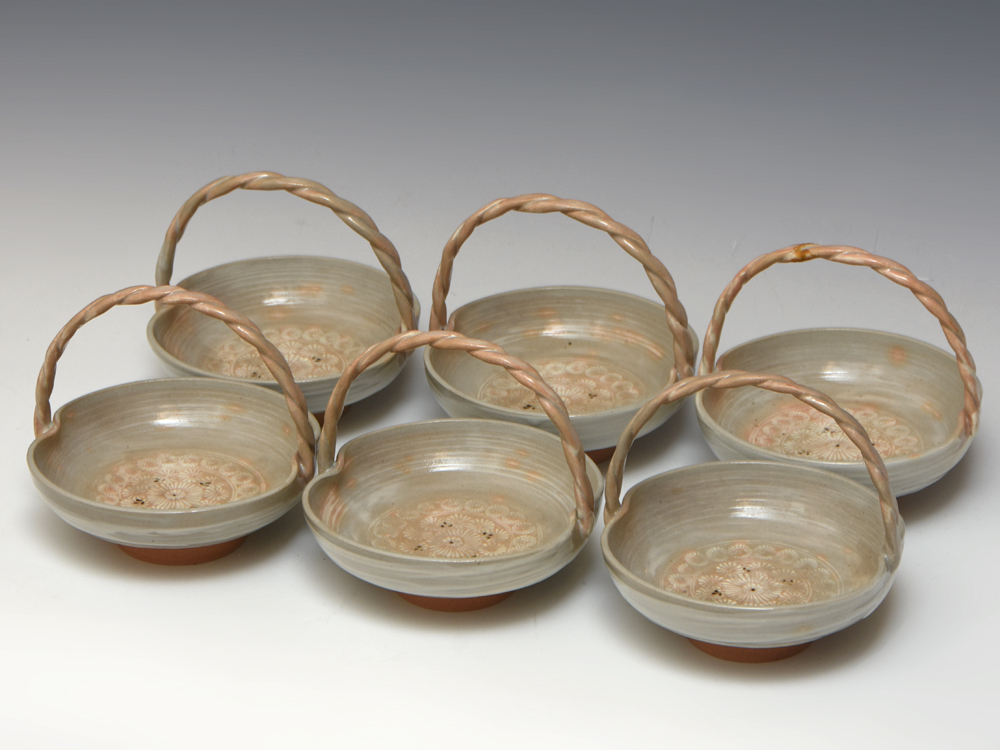音羽山窯 陶楽(造)御本三島 手付 向付 6客 和食器 懐石道具 懐石料理 会席道具 会席料理 |