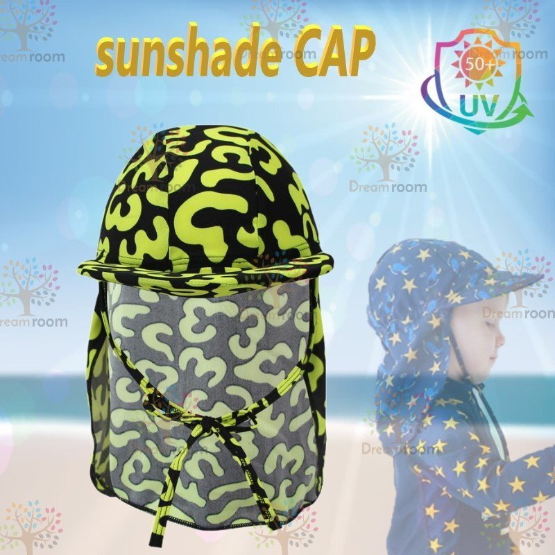 1スタ☆kids UPF50+ サンシェード スイムキャップ UVカット【14】 帽子 日焼け防止 日よけ 海水浴 公園 ツバ フラップ あご紐付き