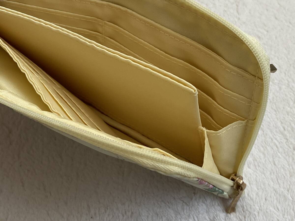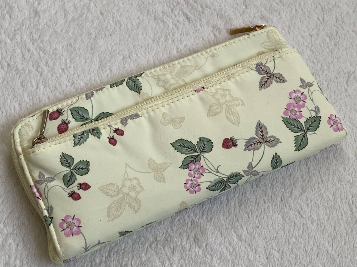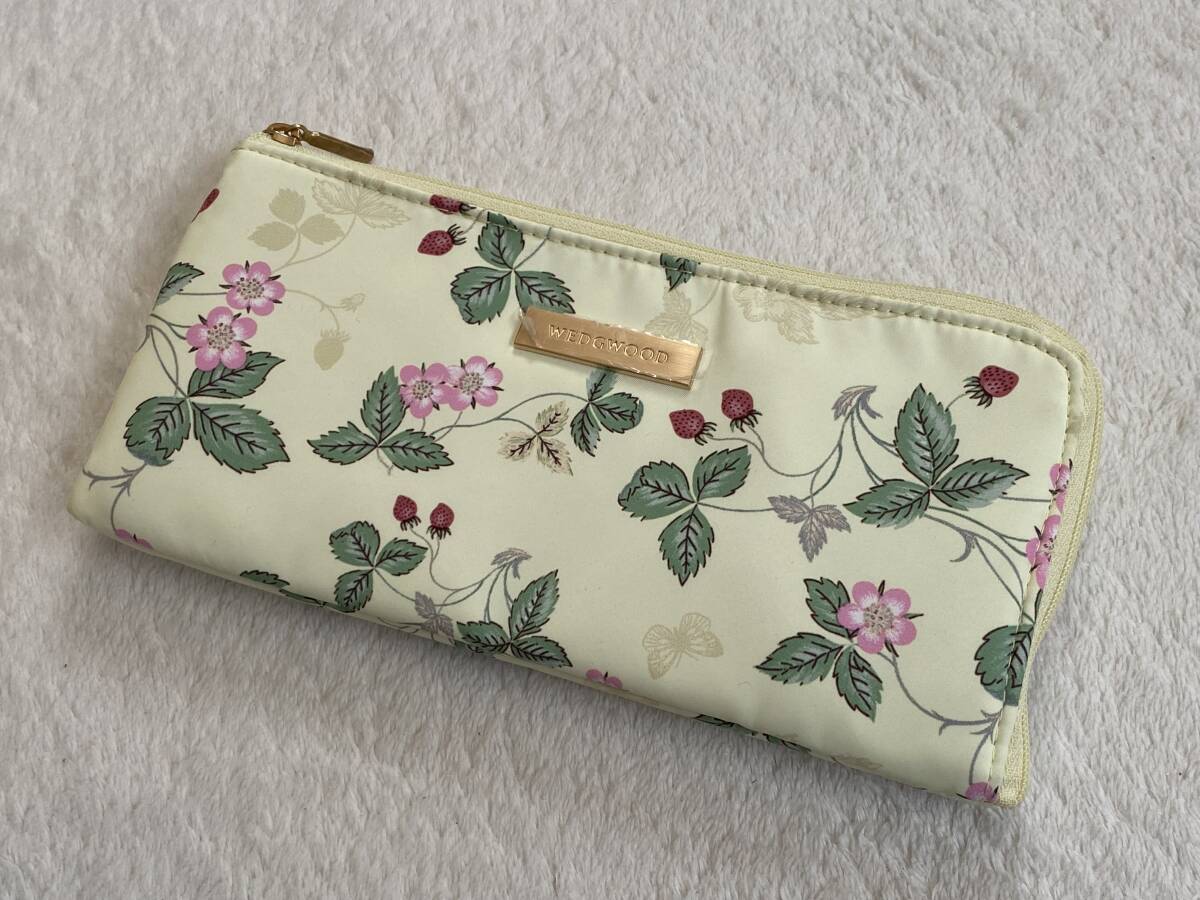 未使用【WEDGWOOD】 ワイルドストロベリー 軽量 マルチウォレット 定価4,400円(税込) 薄型軽量仕様で、バッグの中などでも すっきりと収まり、かさばりにくい マルチウォレット 旅行にも大活躍! 薄いイエローの地にWEDGWOOD定番・人気の ワイルドストロベリー柄をプリント 正面にはロゴ押し型入りの金属プレート付き 開口部はL字型のファスナー式 素材が程良く柔らかいため大きく開き 中の物を出し入れしやすい作り 外側・裏面にファスナー付ポケット×1 内部にカード入れ×12 オープン長ポケット×3 海外旅行の時には仕切りとポケットを使って 日本円と外貨を一緒に持ち歩くにも便利です ★素材 外側:ポリエステル 内側:ポリエステル ★サイズ 約縦9.5×横19.5×厚み1.2cm ★重さ 約75g |