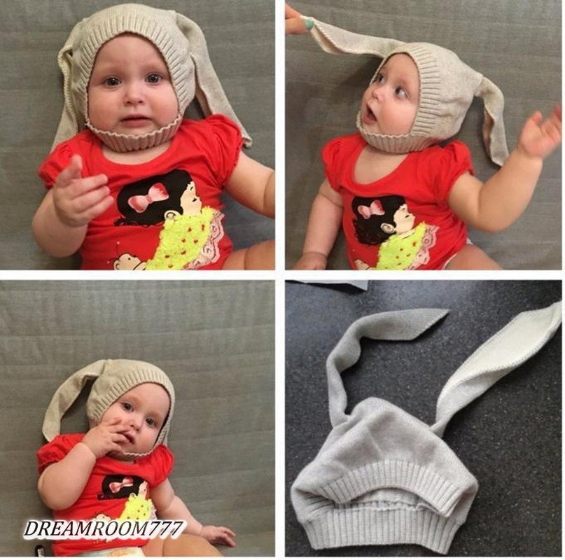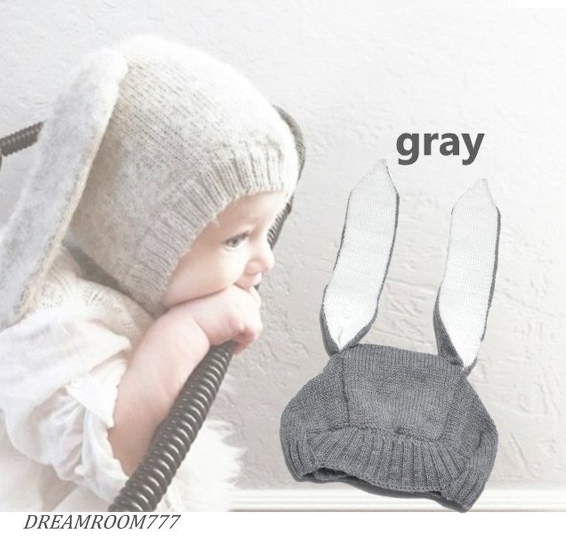 たれ耳がcute☆ラビットヘッド ベビーニットキャップ【グレー 】ヘアバンド ヘッドガード ニット帽子 赤ちゃん コスプレ K-259
