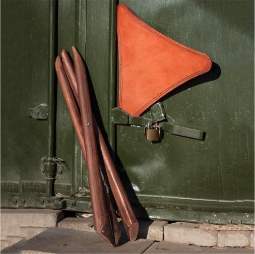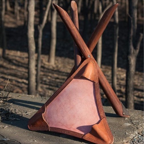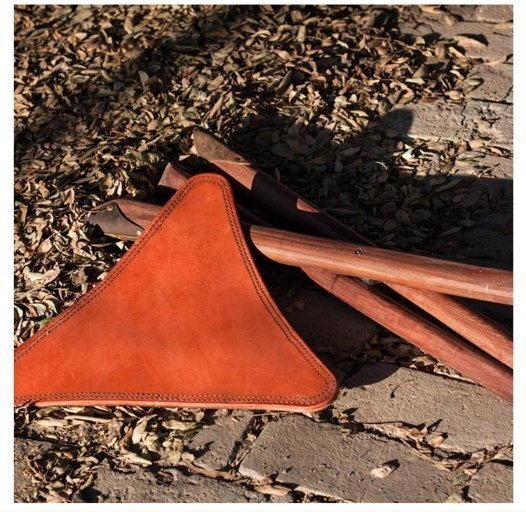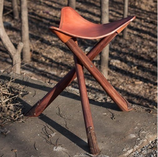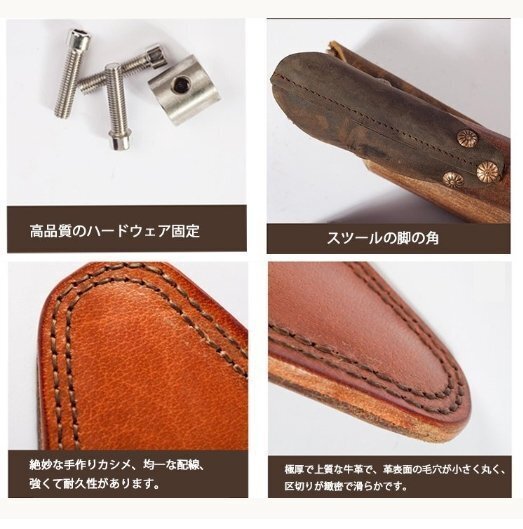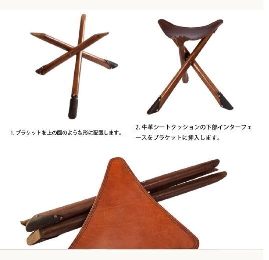 チェア コンパクトスツール 三脚椅 天然木&本革 3本足折りたたみ 牛革 キャンプ/フェス/アウトドア/グランピング