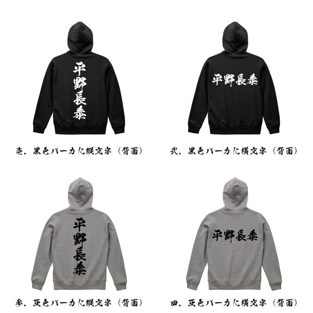 平野長泰 (ひらのながやす) オリジナル パーカ 書道家が書く プリント フルジップ パーカー S M L XL XXL 110 130 150 【 戦国武将 】