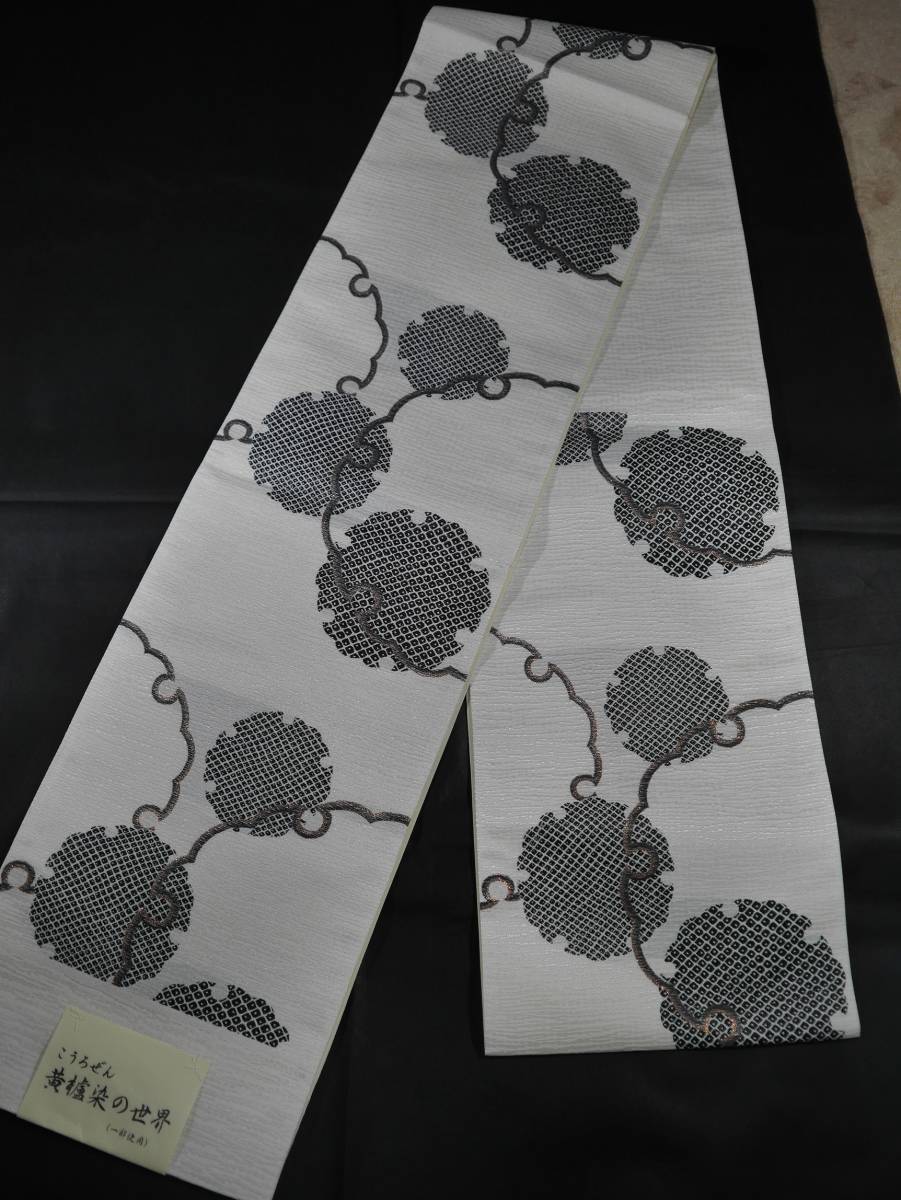 西陣織の老舗佐々木染織より織りあがったばかりの袋帯です。古来より上級社会を象徴するしなやかな黄櫨色の帯地に黒の疋田の雪輪模様をバランス良く織りあげられた粋な上品な袋帯です。お洒落なお着物の柄合わせに最適です。お仕立てには三河の綿芯を入れ手縫い仕立てを致します。お仕立て上がりには3~5日のご猶予お願い致します。