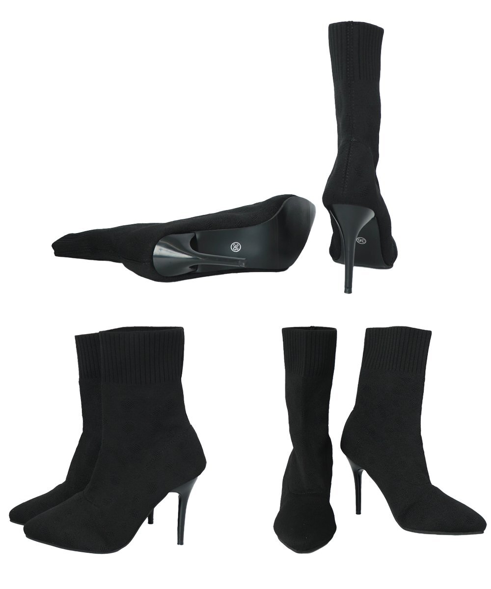 レディース ニットブーツ ポインテッドトゥ 9cmピンヒール シューズ 無地シンプル セクシー オフィス きれいめ 靴