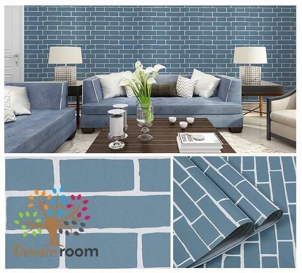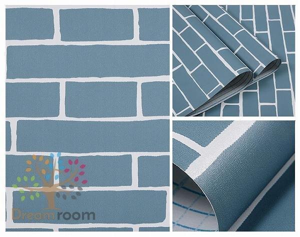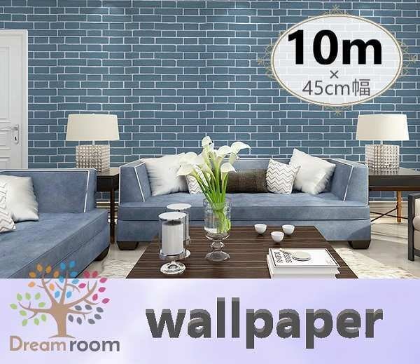 【 10m 】 3D レンガ ウォール ペーパー ビンテージ ブルー 石垣 ストーン 壁紙 糊付き 北欧風 インテリア はがせる シール DIY