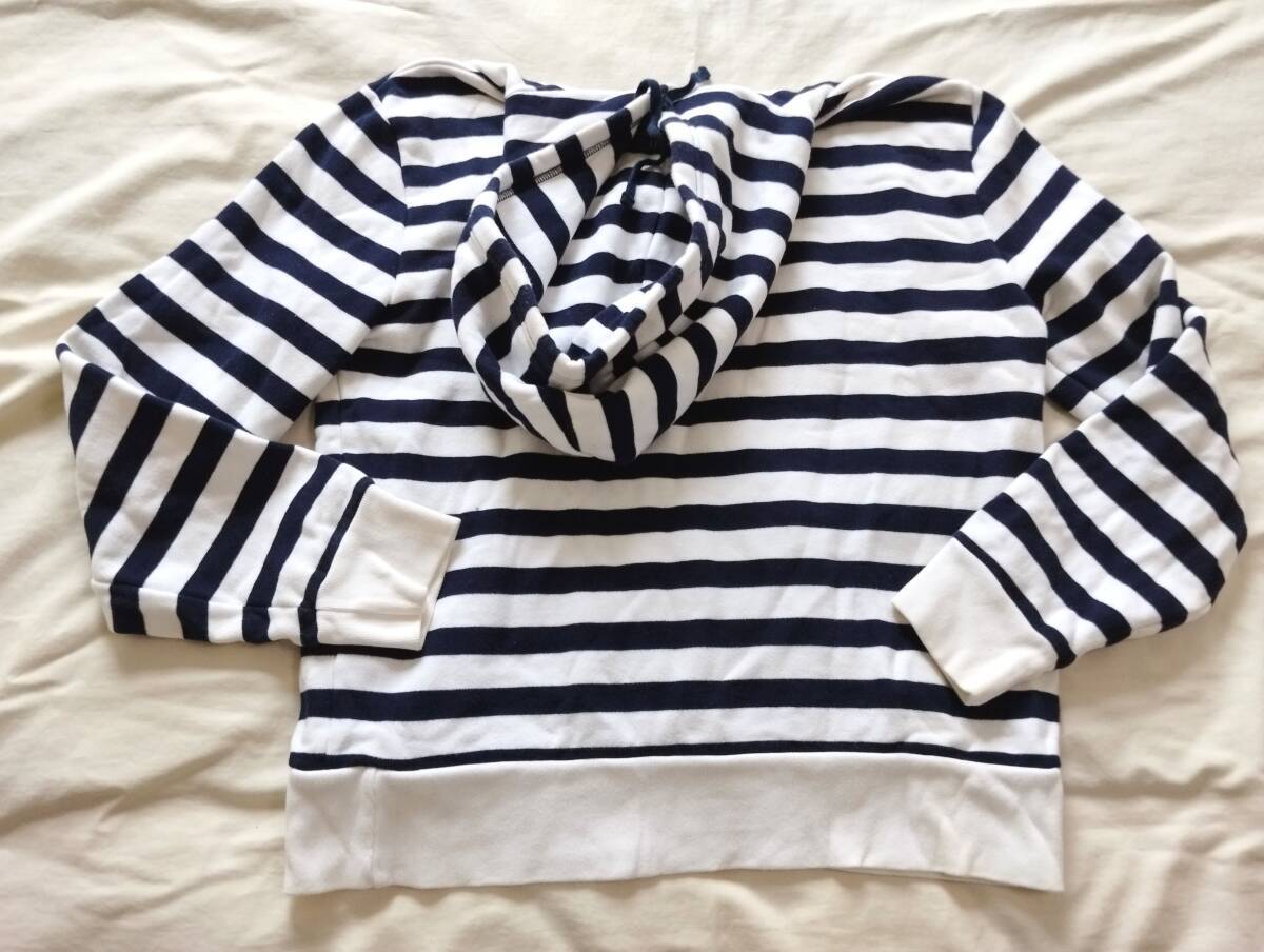 肩幅49cm、脇の位置の横幅58cm、後ろ着丈(フードの付け根から)68.5cm、袖丈(肩から)65cm