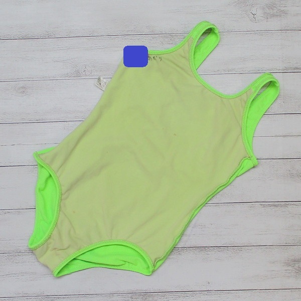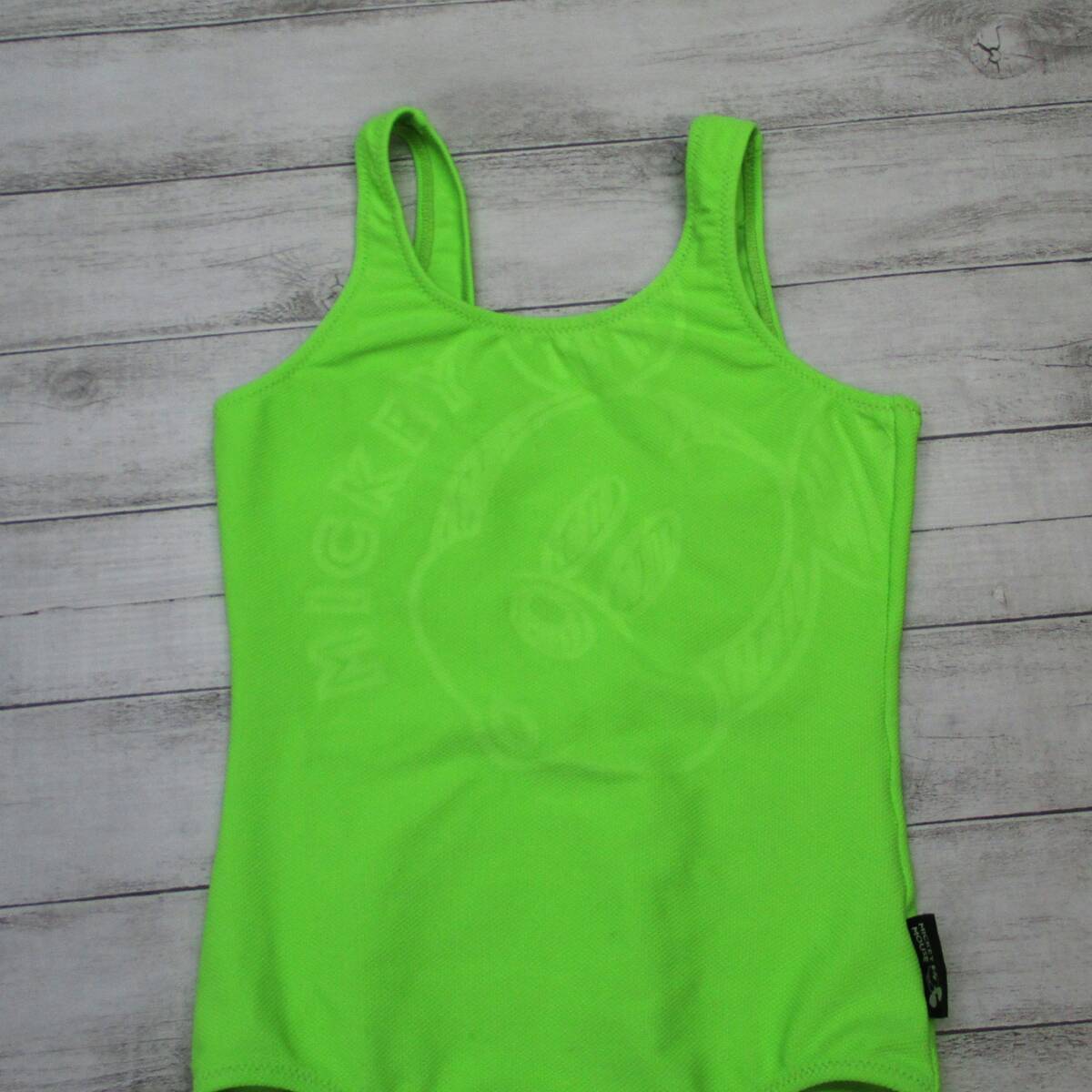 c5140★大きなミッキーマウス Disney 目立つ ネオンカラー 蛍光黄色 140サイズ ワンピース水着 レディース 女子 ジム 海 プール 記名あり