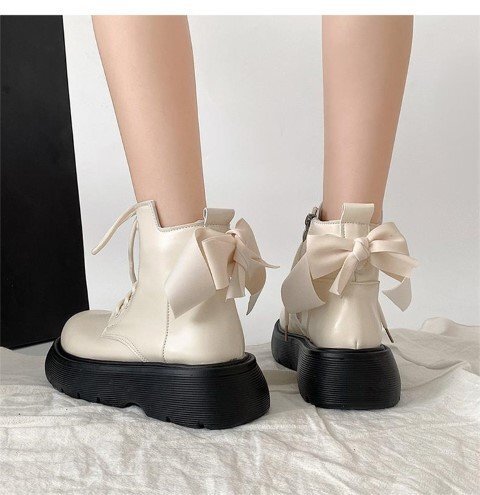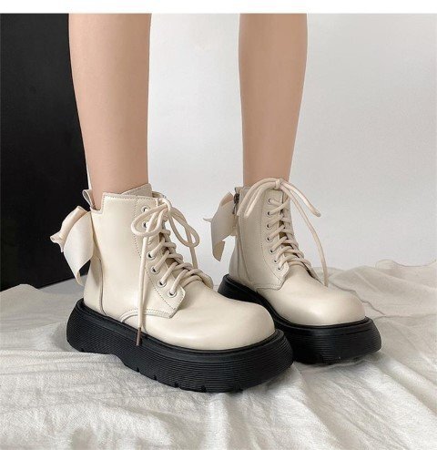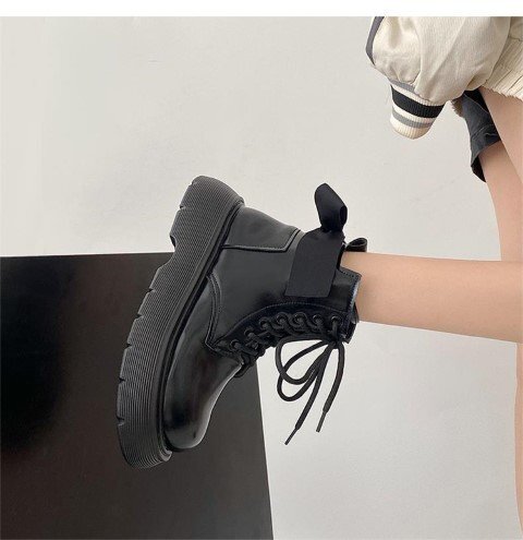 ショートブーツ 厚底 かわいい シンプル カジュアル リボン レディースシューズ 【40】25cm ブラック