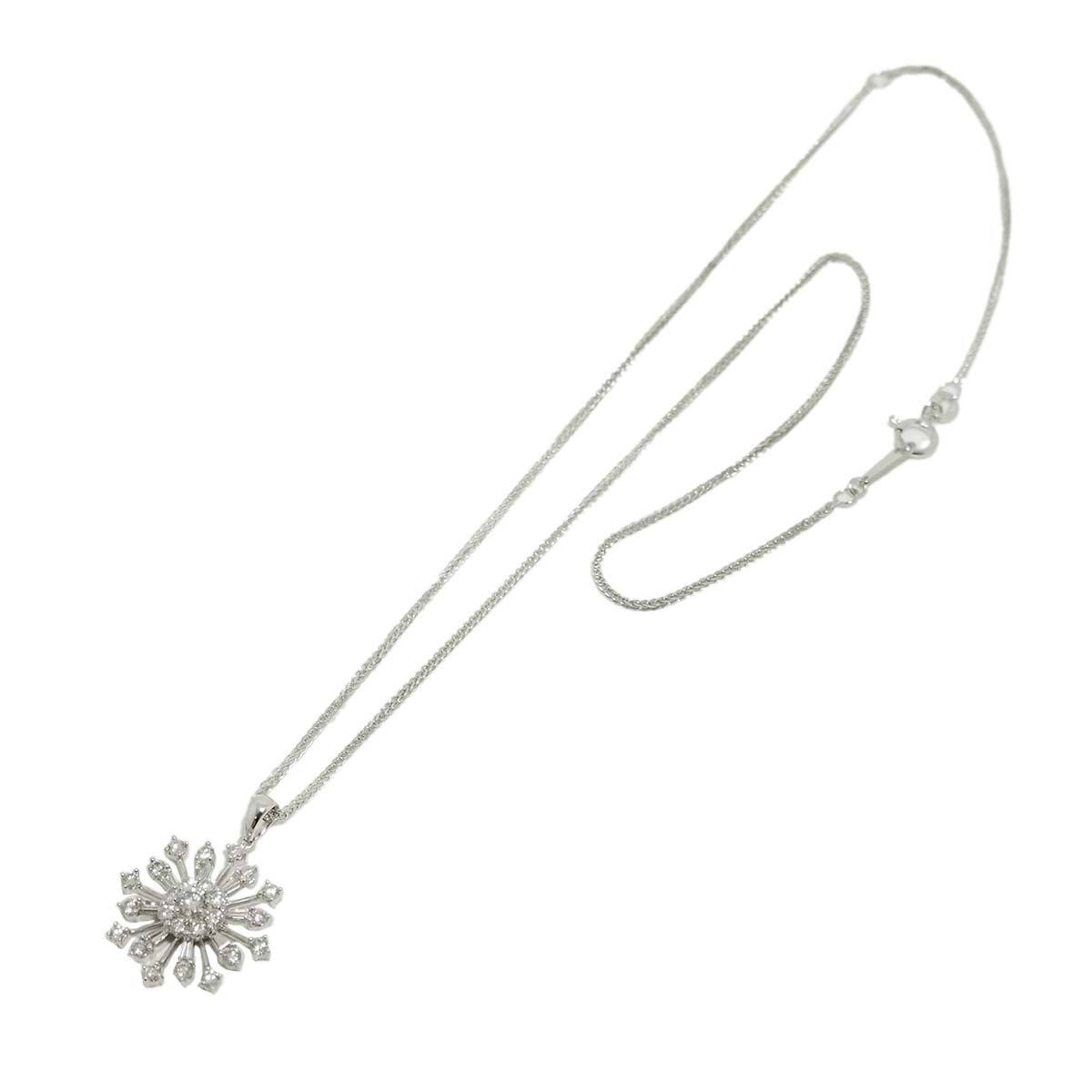 商品概要 | ホワイトゴールドにダイヤをあしらったデザインネックレスです。胸元を華やかに演出してくれます。 |