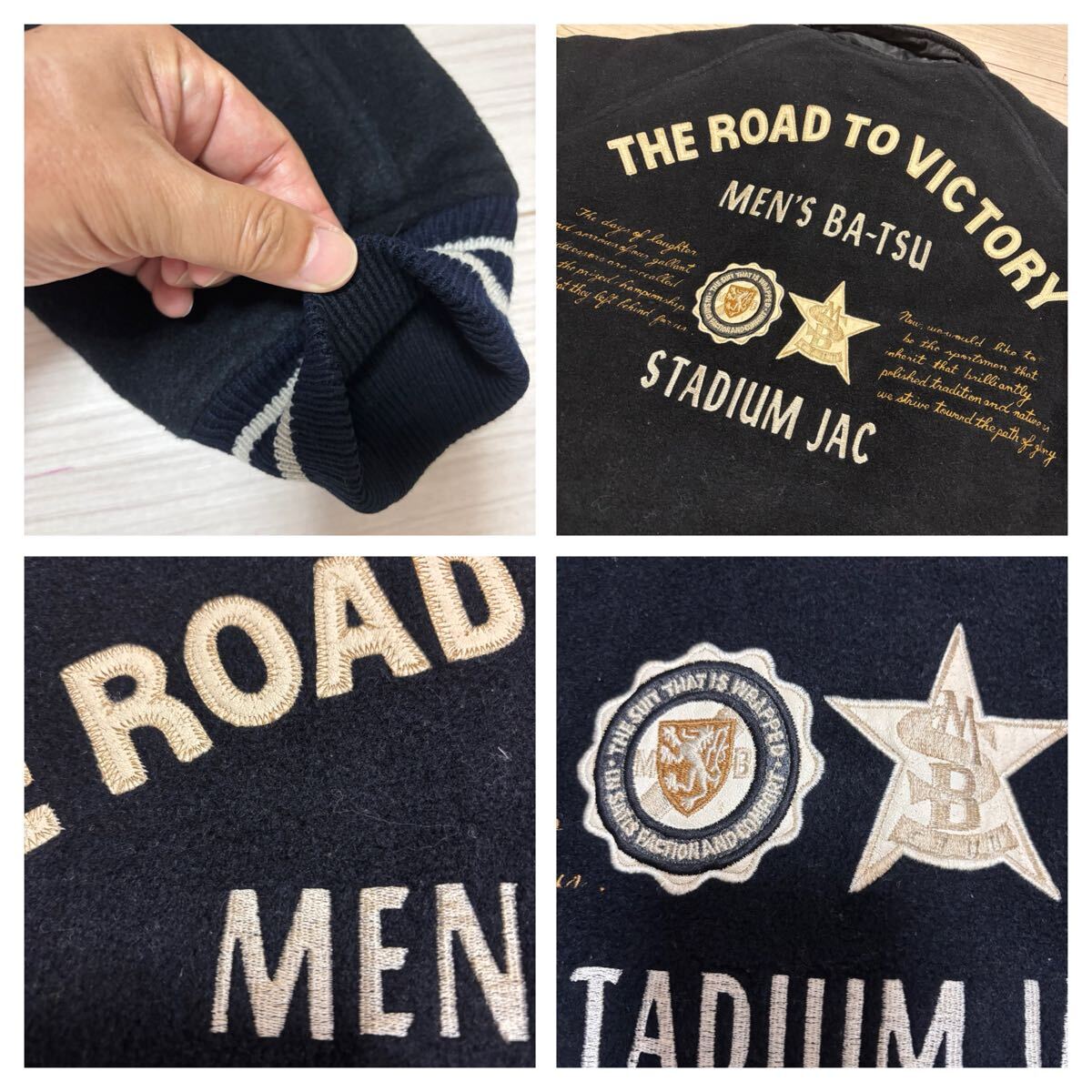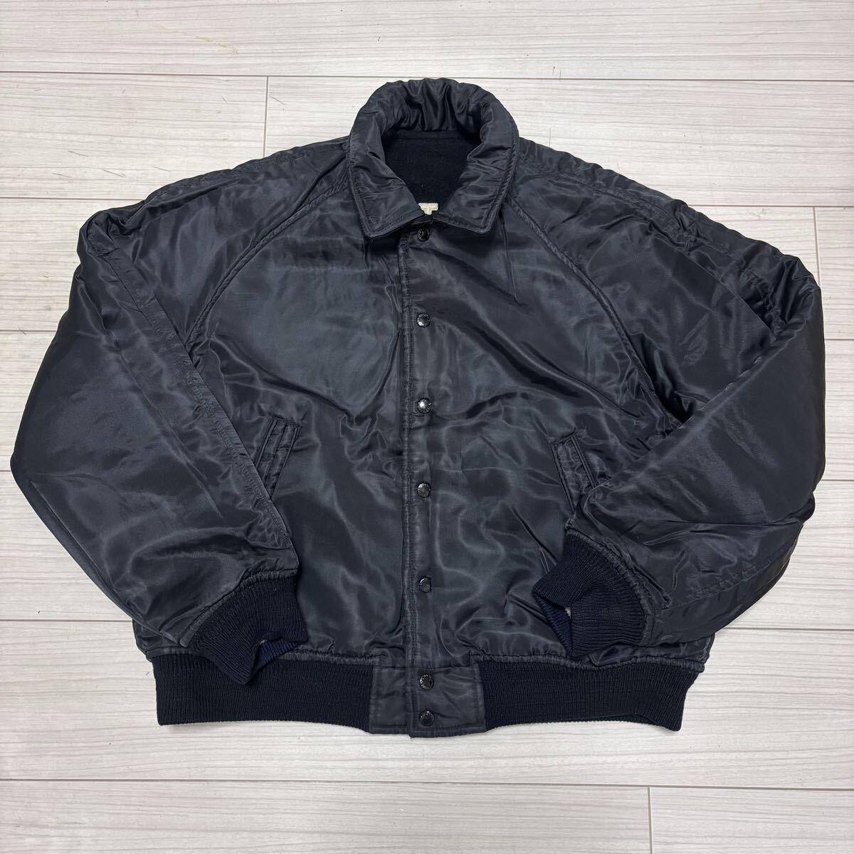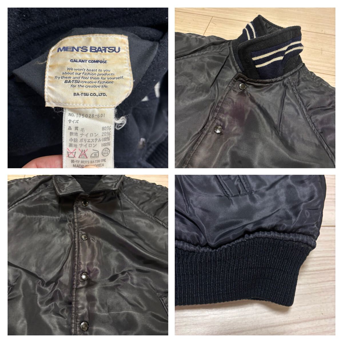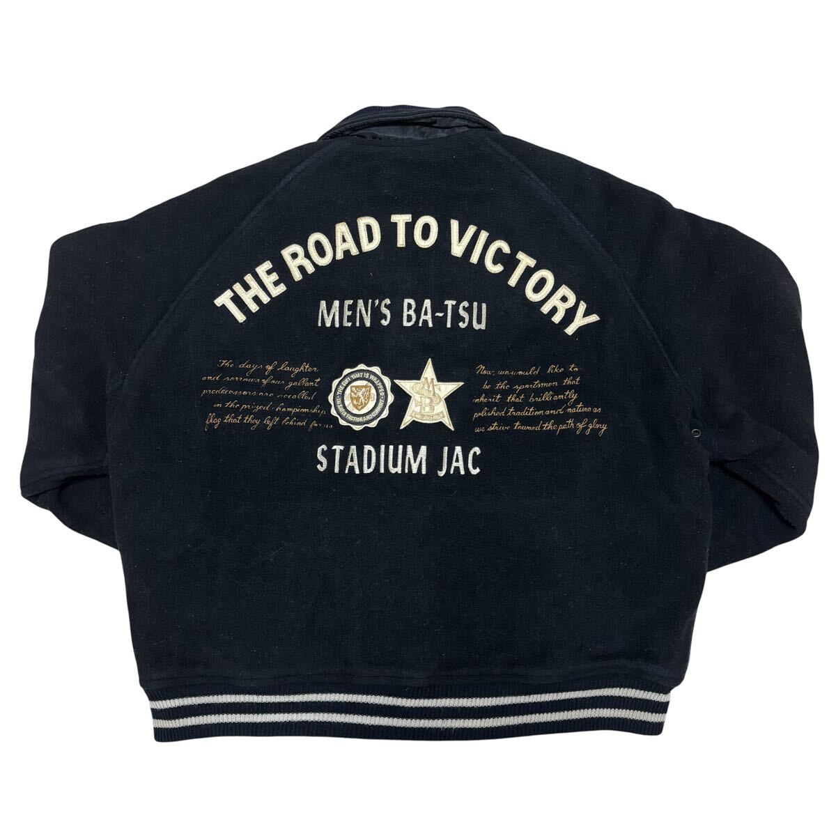 こちらは、90s■MEN'S BATSU■アーチロゴ 刺繍 リバーシブル スタジャン F 黒 ブラック リブライン メンズバツ 中綿入り archive ヴィンテージ オールド