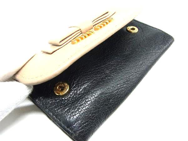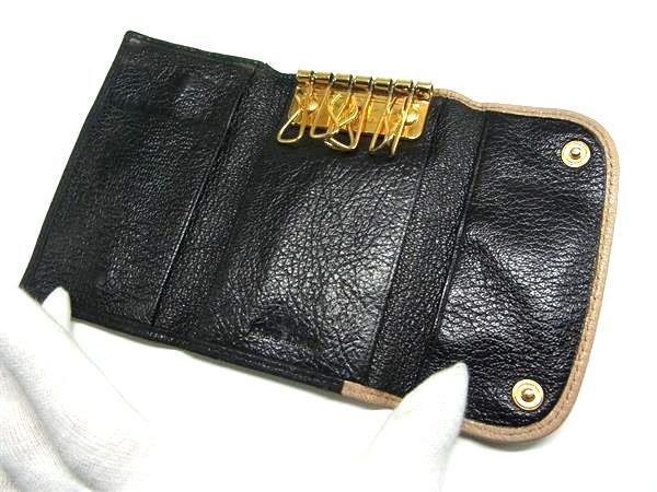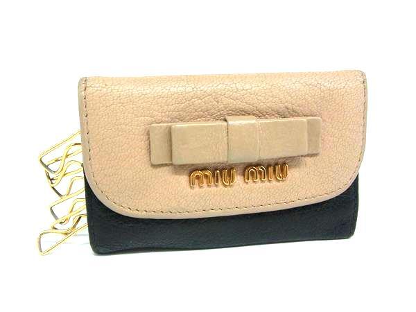 miumiu ミュウミュウ レザー リボン 6連 キーケース 鍵入れ レディース ベージュ系×ブラック系 DJ4147