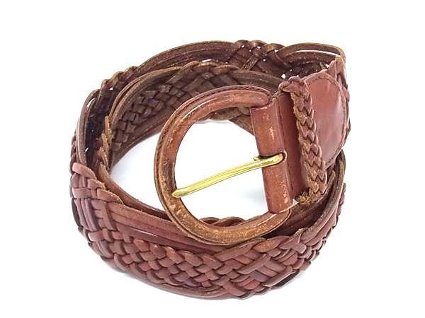 RALPH LAUREN ラルフローレン ヴィンテージ レザー 編み込み ベルト 表記サイズ S メンズ ブラウン系 DI9964