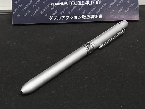■新品同様■ PLATINUM プラチナ ダブルアクションR3 ボールペン シャープペン 筆記用具 文房具 ステーショナリー シルバー系 DJ3600