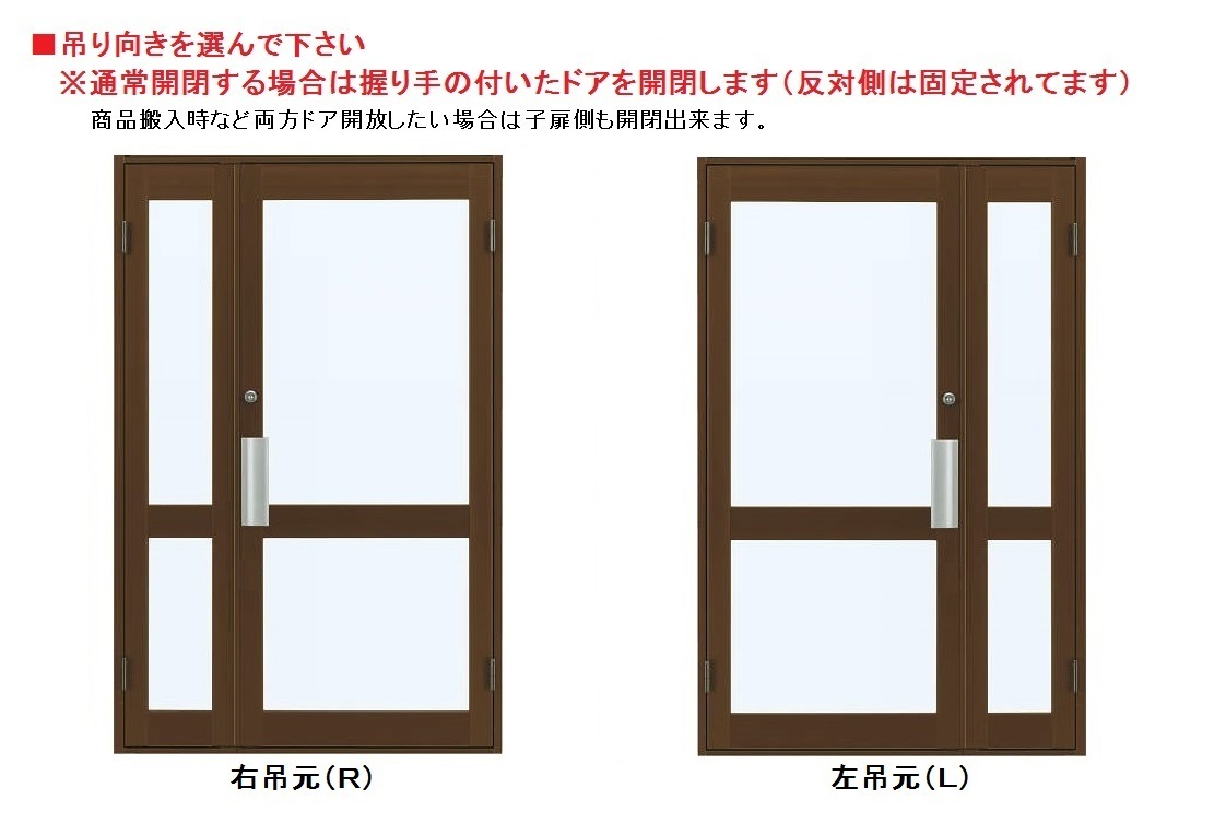 ■別途消費税お申し付け致します。(落札価格+消費税+送料) ■出荷までには決済終了後、土日祝除く6日~8日 (色・型・タイプにより納期が異なります) (在庫や交通状況の関係上、納期が遅れる場合もございます) ■出荷日や問い合わせ番号につきましては後日ご連絡いたします。 ■落札後、下記項目のご連絡お願いします ●落札後のご連絡事項● ①発送先 御氏名、御住所、携帯お電話番号 ②商品色 (ブラウン ホワイト カームブラック プラチナステン ピュアシルバー) ③吊り向き(写真は外観【右】となります) ④ガラスの種類(透明or不透明) ⑤オプション (ドアクローザ+9,800円)(室内額縁用アングル+5,000円)(両開き用固定ハンドル バー+15,000円 PP +18,000円) コンストラクションキー(工事用キーセット)+3,000円 | ||