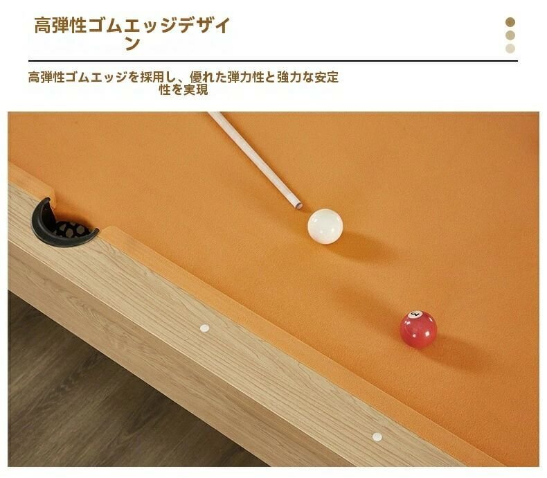 | 高級木製デザイン:シンプルでエレガントなデザインが、どんなインテリアにも調和し、長く愛用いただけます。高品質の仕上がり:耐久性のある素材で作られ、長期間使用可能。あなたの家庭に高級感をもたらします。このビリヤード台は、ビリヤードだけでなく、卓球も一緒に楽しめるため、家族全員や友人との楽しい時間を提供します。ご自宅にエンターテイメントの中心を持ち込んで、贅沢なひとときをお過ごしください。お部屋に合わせた最適なサイズを選び、さらに楽しみを広げましょう。 |
