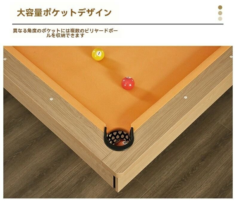 | 高級木製デザイン:シンプルでエレガントなデザインが、どんなインテリアにも調和し、長く愛用いただけます。高品質の仕上がり:耐久性のある素材で作られ、長期間使用可能。あなたの家庭に高級感をもたらします。このビリヤード台は、ビリヤードだけでなく、卓球も一緒に楽しめるため、家族全員や友人との楽しい時間を提供します。ご自宅にエンターテイメントの中心を持ち込んで、贅沢なひとときをお過ごしください。お部屋に合わせた最適なサイズを選び、さらに楽しみを広げましょう。 |