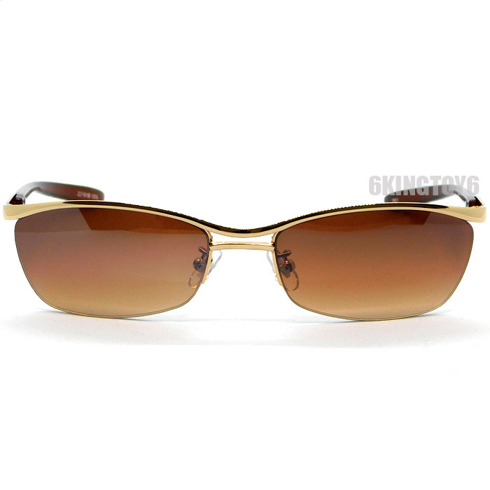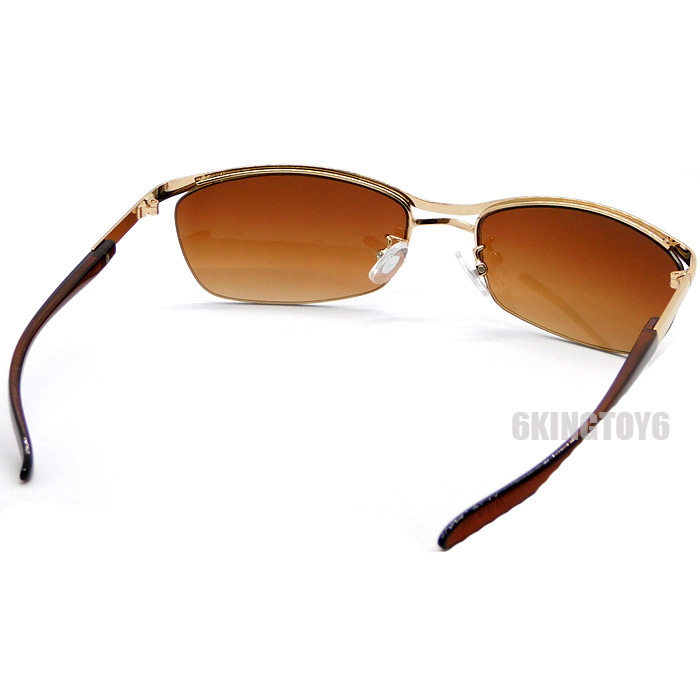 送料無料 オラオラ系 サングラス メンズ UVカット メタル ナイロール ハーフリム 伊達メガネ 伊達眼鏡 シャープ ブラウンハーフミラー■