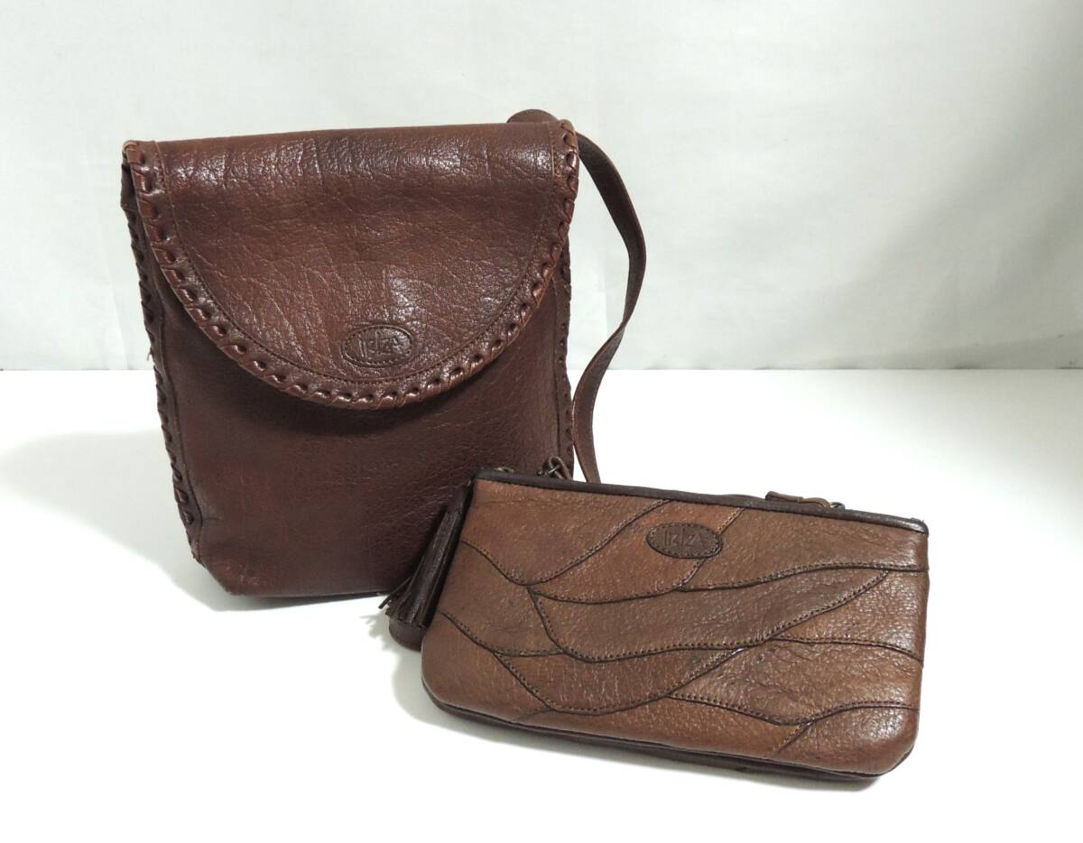 □ IBIZA イビサ レザー 本革 ショルダーバッグ 2点 肩掛け 斜め掛け ロゴ 茶色 鞄 ブラウン タッセル 中古品 保管品 ③ | |||||||||||||||||||