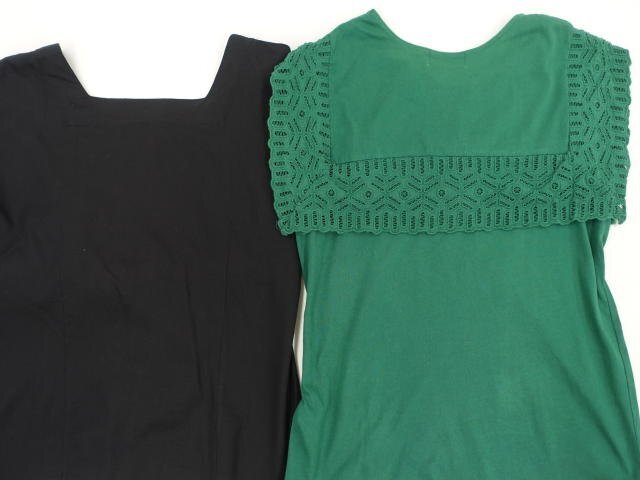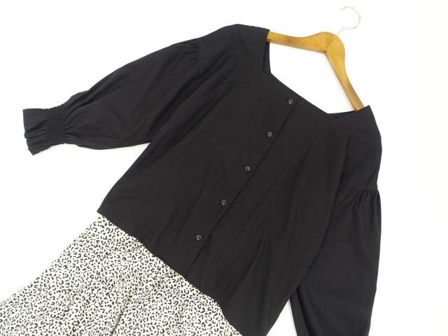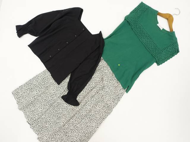 洗える半袖カットソー+長袖ブラウス+ロング丈フレアスカート コーディネート上下3点セット M相当 グリーン/ブラック/アイボリー地 ブラック アニマル柄 フェミニン・きれいめ系 20代・30代