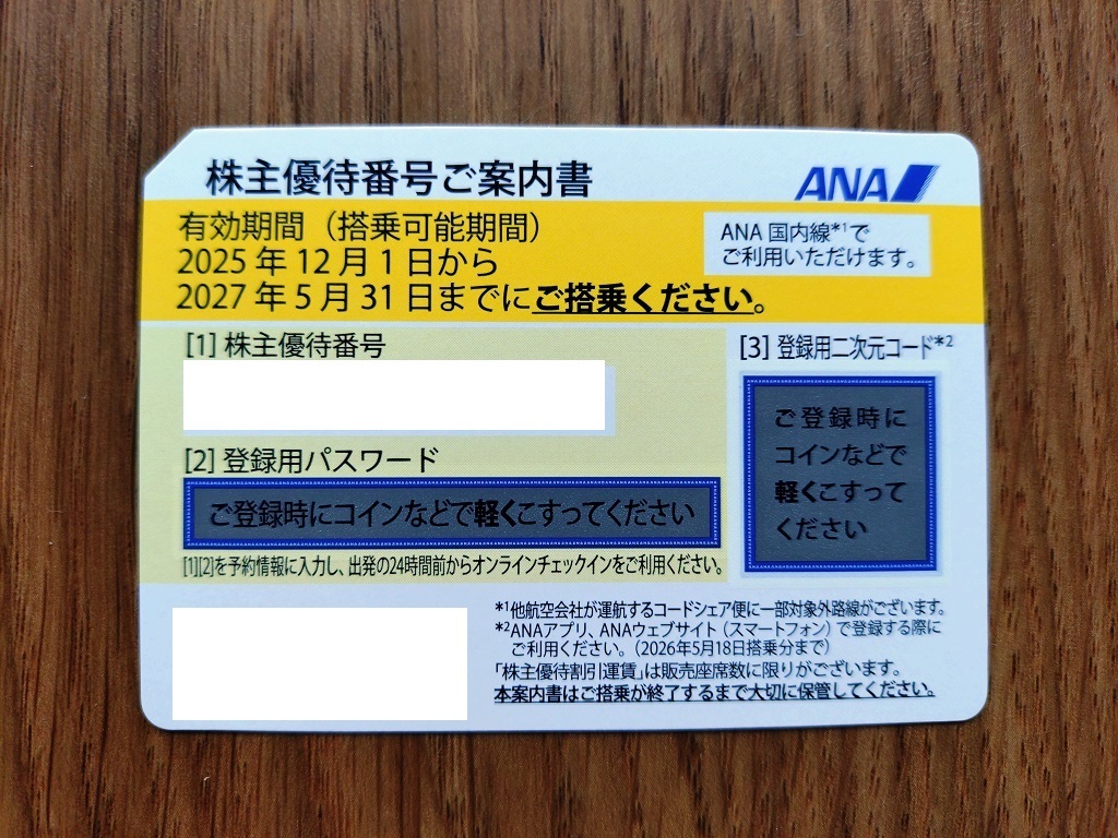 ANA 全日空 株主優待券 1枚 2027年5月31日 番号通知のみ