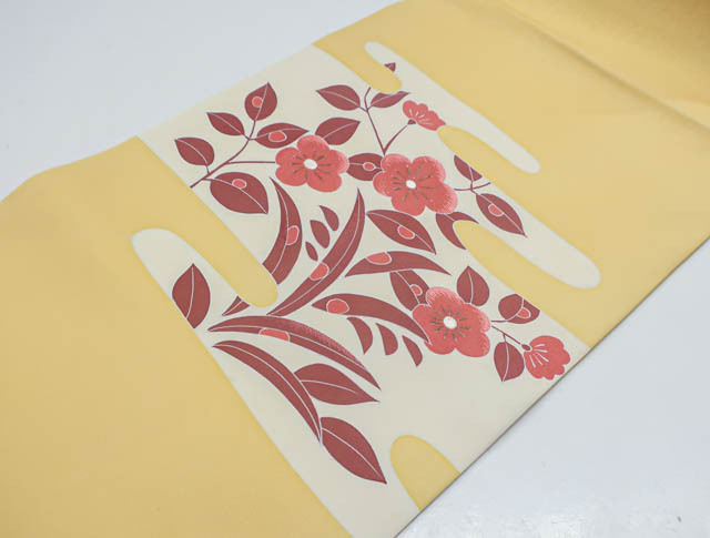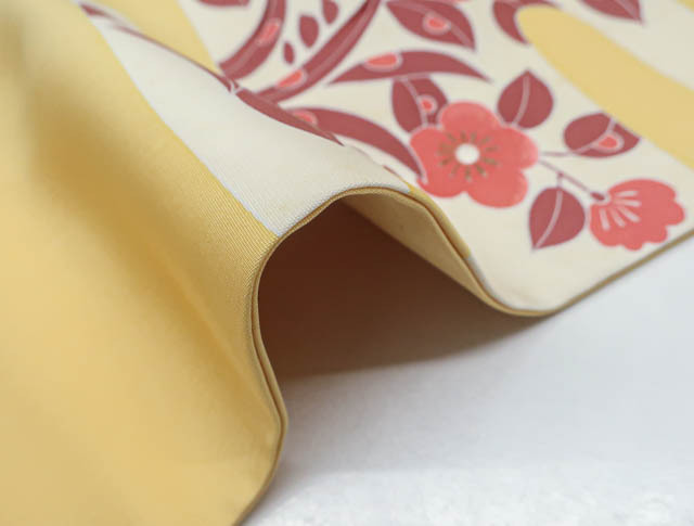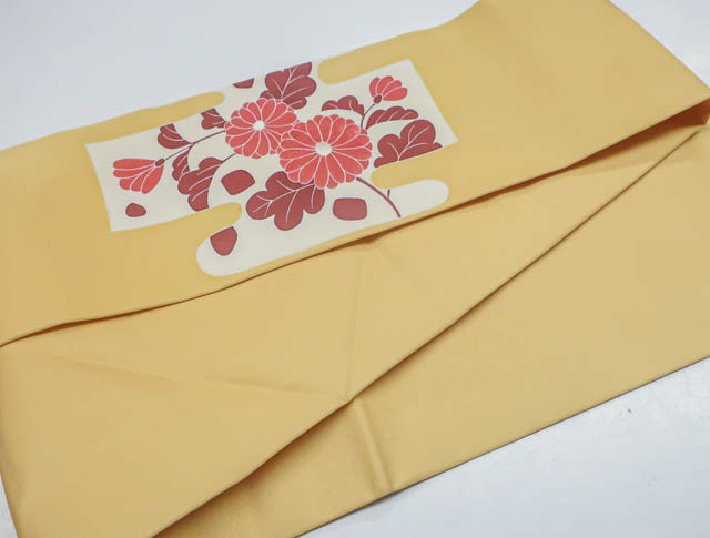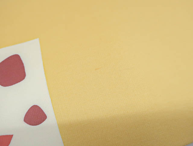 リサイクル商品のため、お太鼓にシミ、前柄近くに点汚れ、無地場にスレがございますが、着用可能なお品です。 地色は、薄山吹色です。 1枚目の画像が近いお色かと思われます。 素材は、化繊です。 |