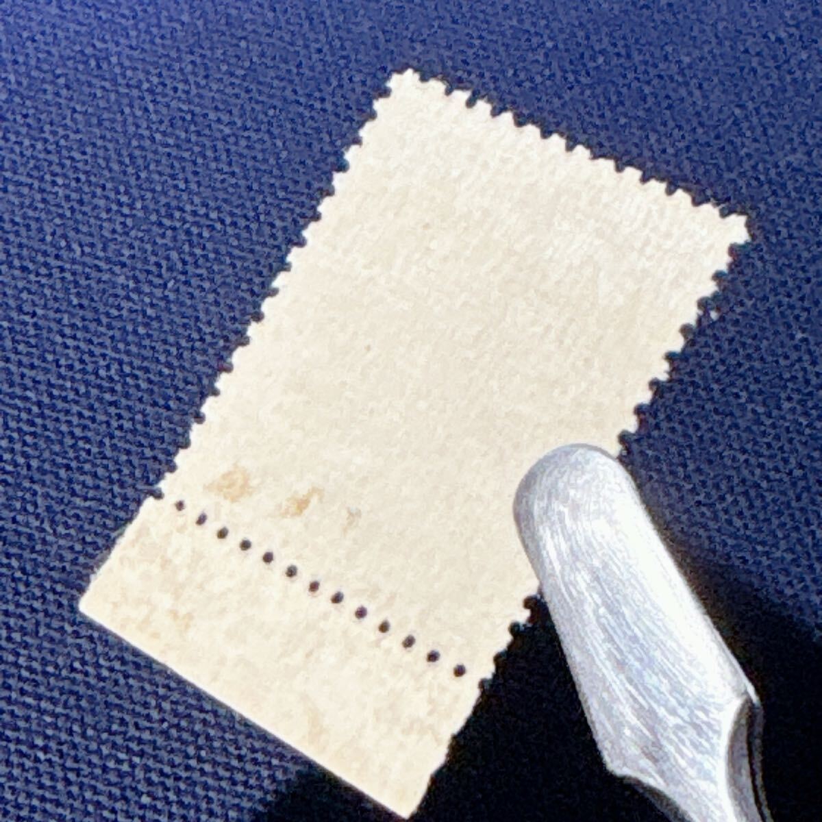 切手裏面にのりがあり(少し薄く見えます)、ヒンジ跡はありません。
