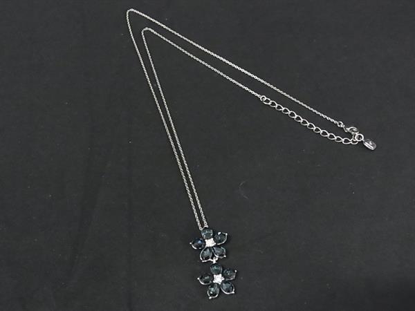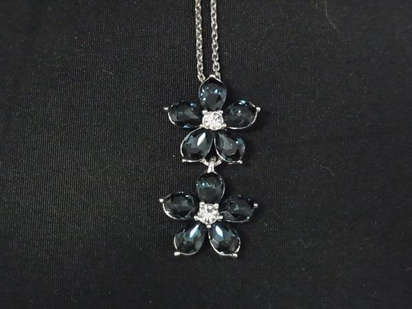 ■美品■ pierre cardin ピエールカルダン ビジュー フラワー 花 ネックレス ペンダント アクセサリー シルバー系×ブルー系 DI6454