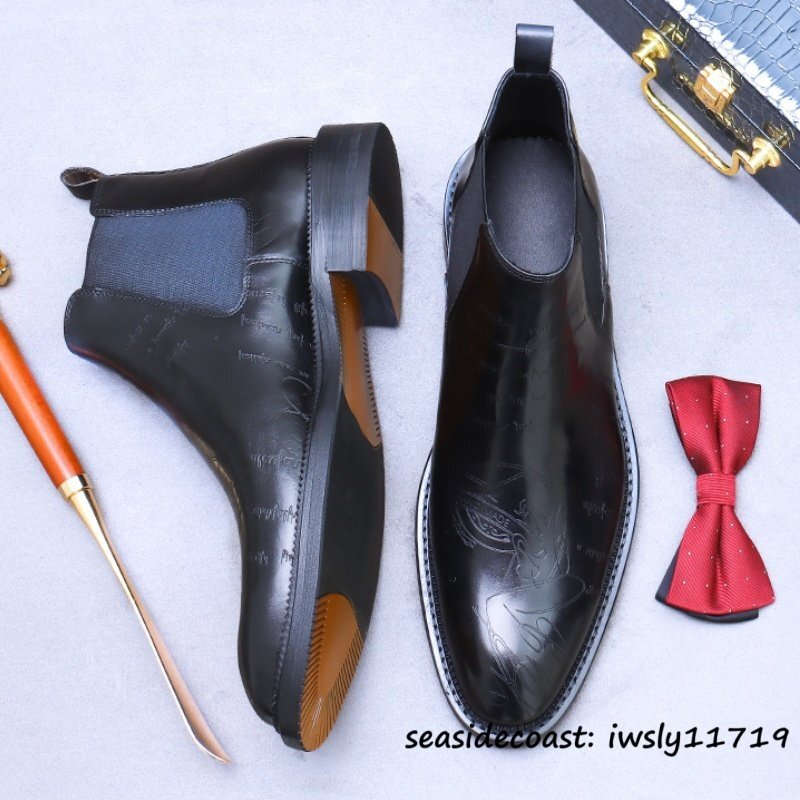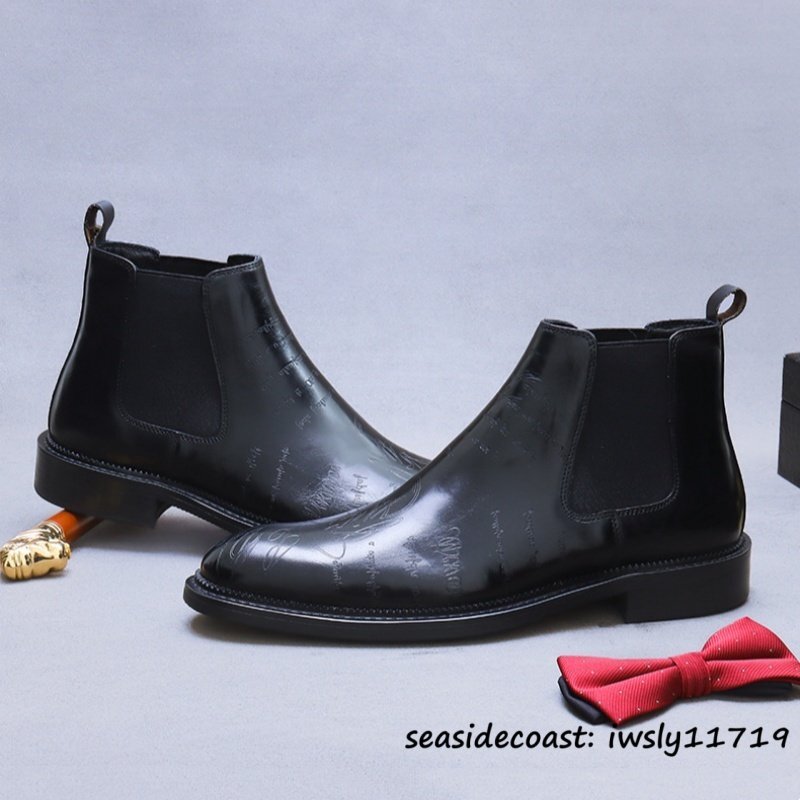 入手困難■マーティンブーツ 牛革 チェルシーブーツ メンズ ハンドメイド ビジネスブーツ 本革 レザーブーツ 皮靴 紳士靴 ブラック 28.0cm