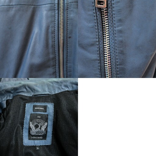 ディーゼル DIESEL ラムレザー ラムスキン レザージャケット ライダース ジップアップ M 青系 1118 IBO84 メンズ