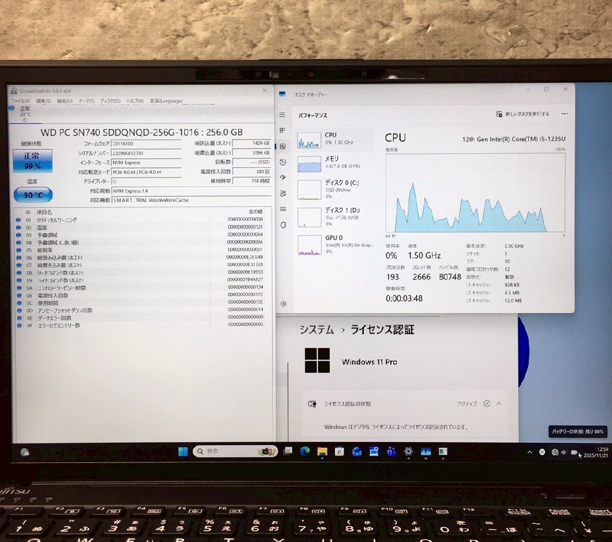 | プロセッサ (クロック) | Corei5-1235U(1.30GHz) |