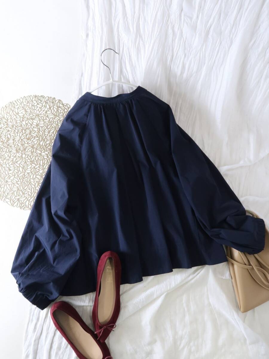 フロント裾のシャーリングデザインが目を惹く可愛らしい一枚。