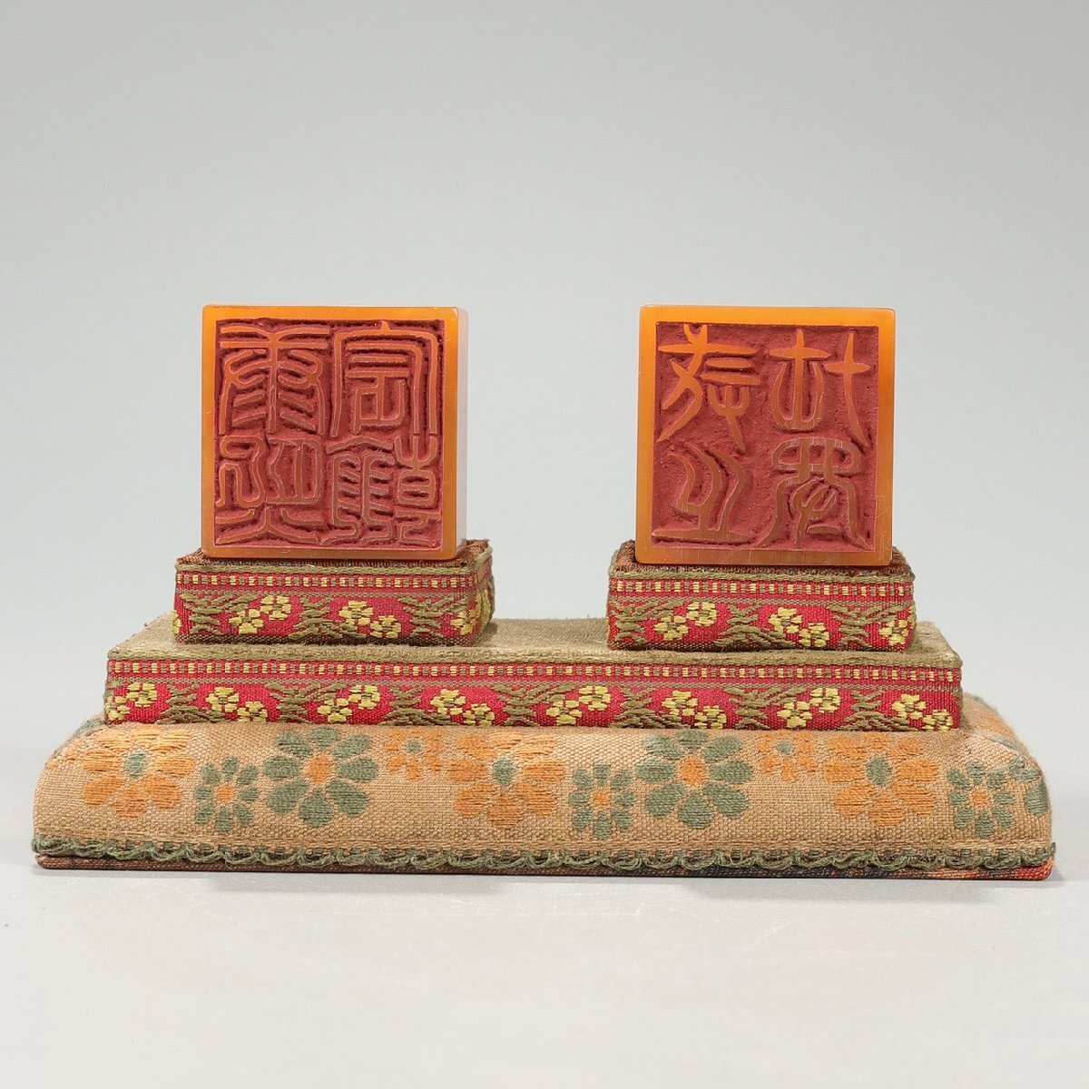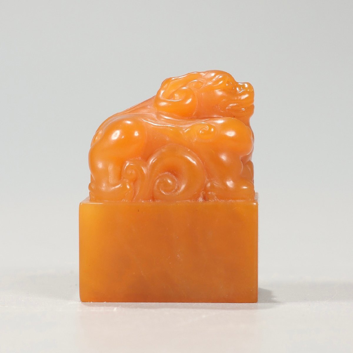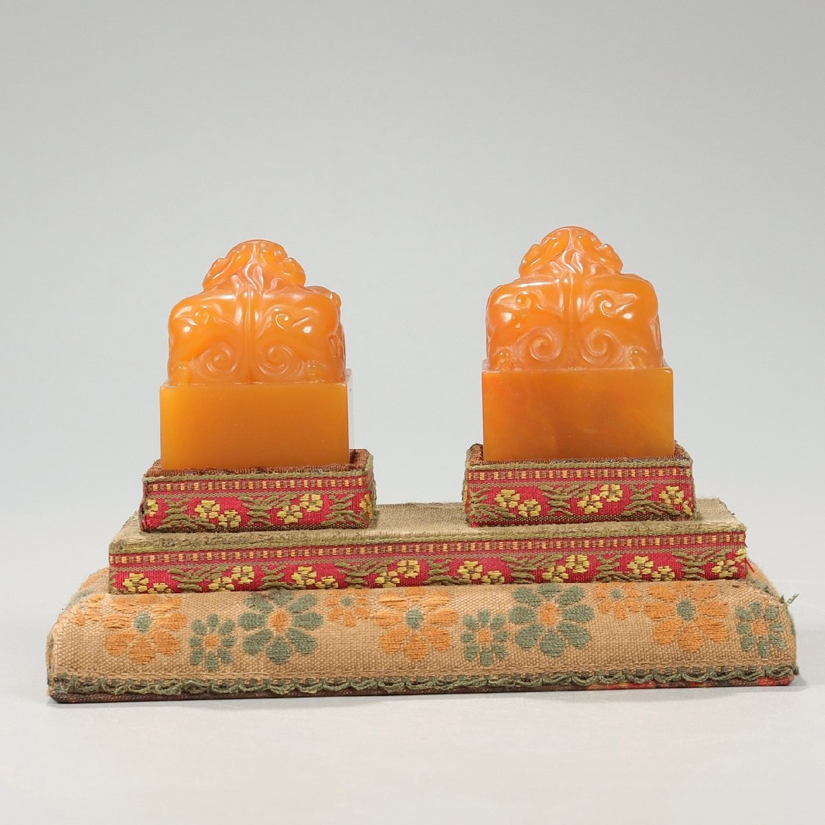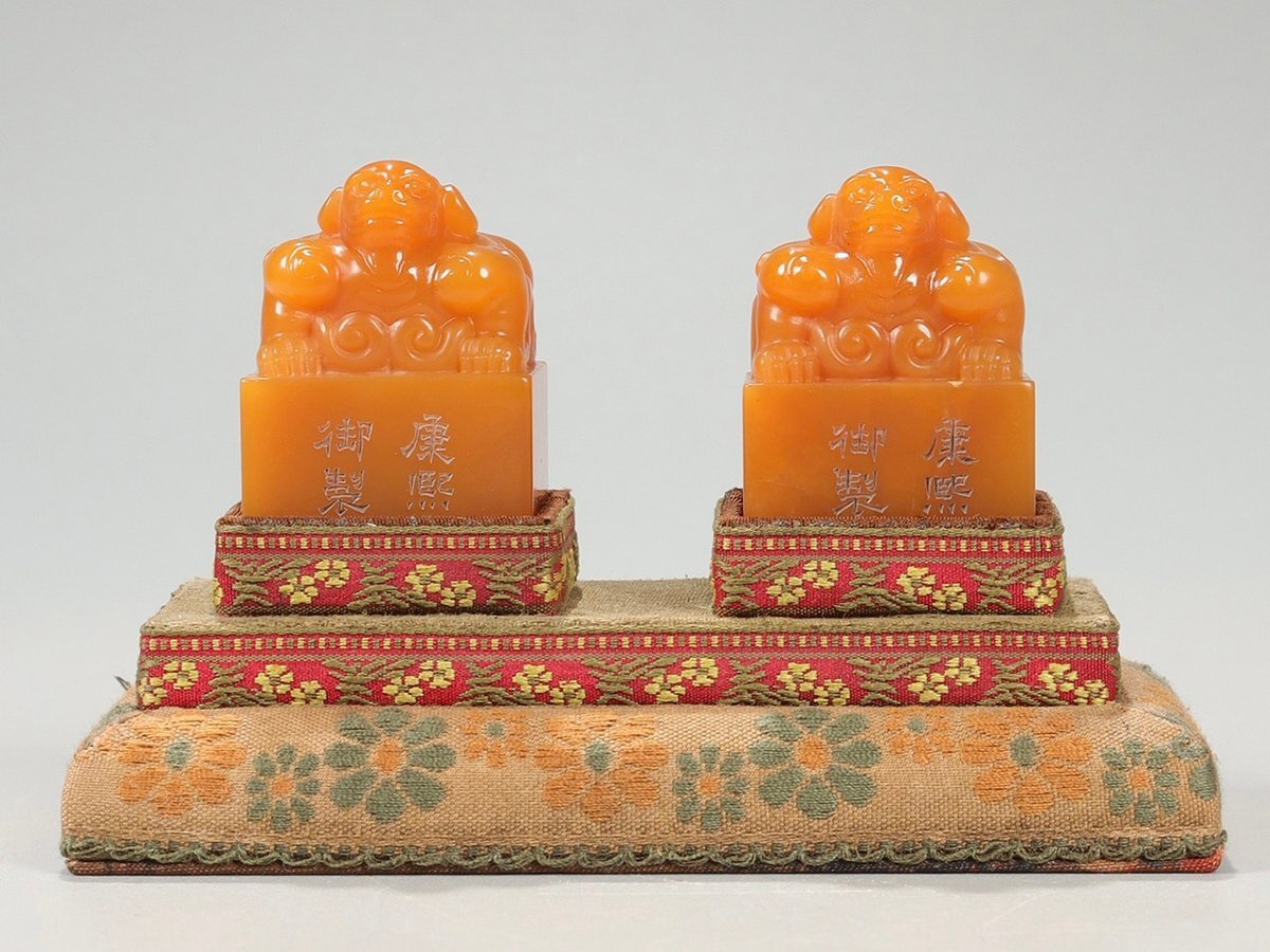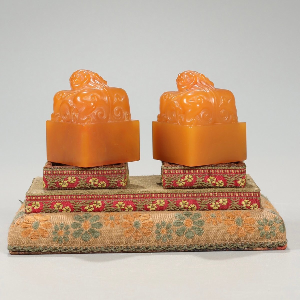 【安】清時代 康熙御製 寿山田黄石彫 瑞獣鈕印章一対 印鑑 共箱 極細工 古置物 古擺件 中国古美術 時代物 189 サイズ(約寸) |