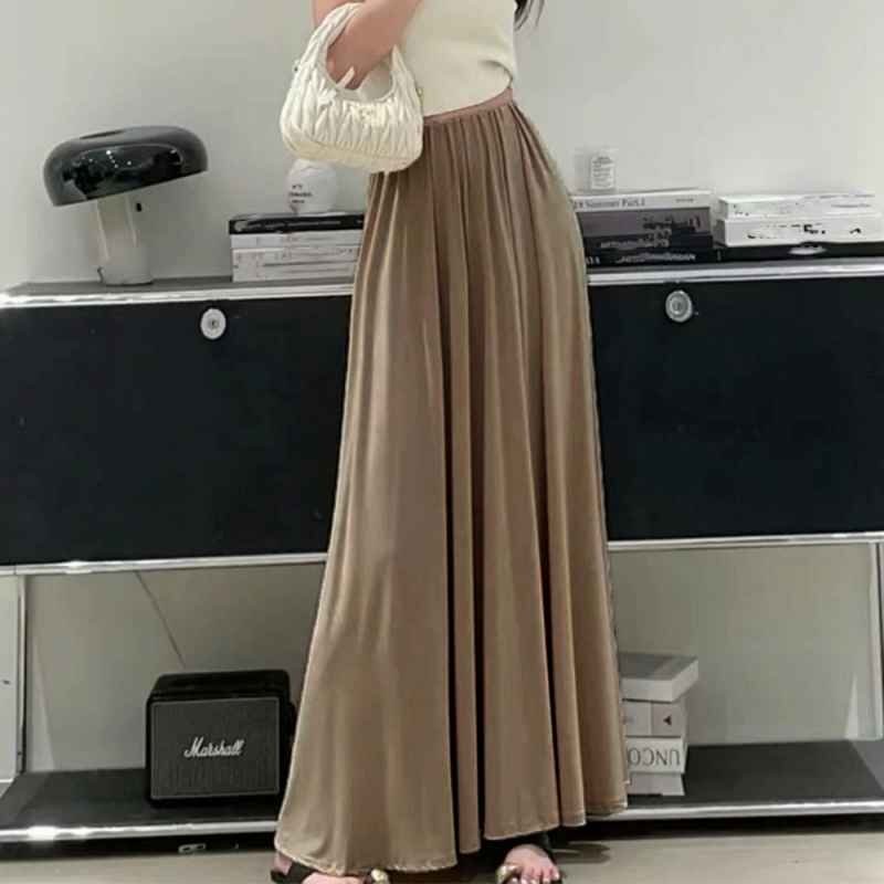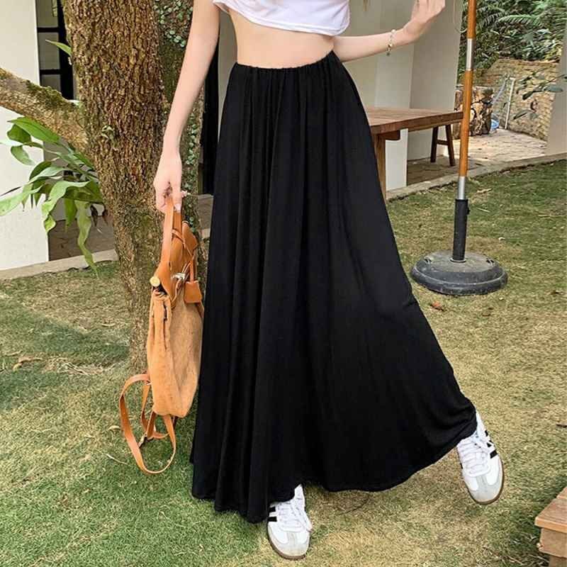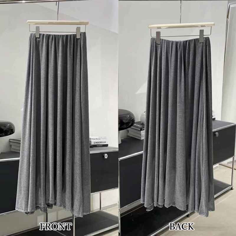 とろんと落ち感のある肌触りの良い綿混生地を使用、歩く度に揺れて優雅な印象のふんわりとろみスカートです。