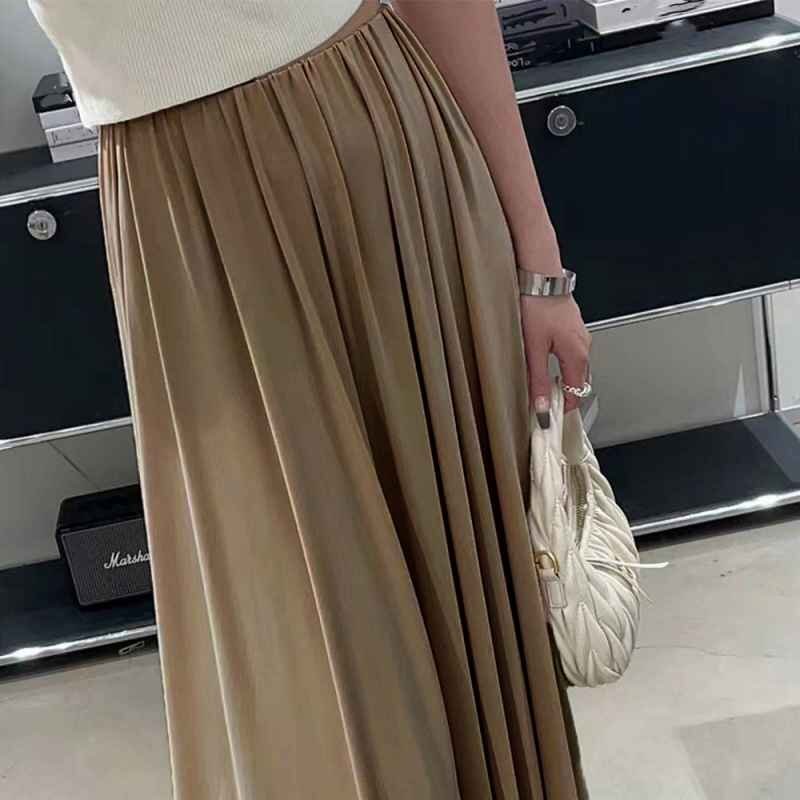 ウエストゴムで穿き心地が楽ちんながらも、きちんとエレガントに着回せるAラインシルエットでキレイめコーデに◎