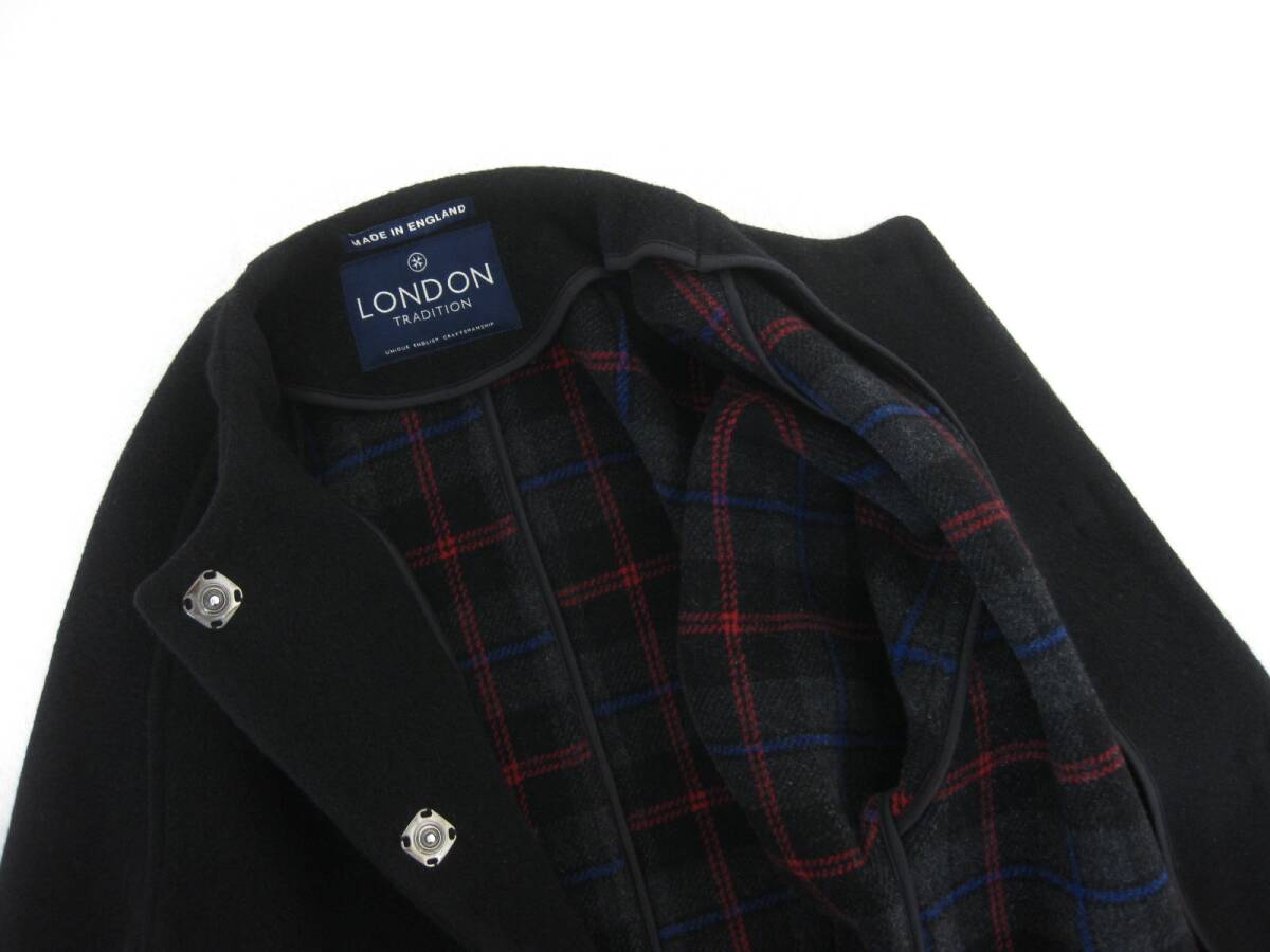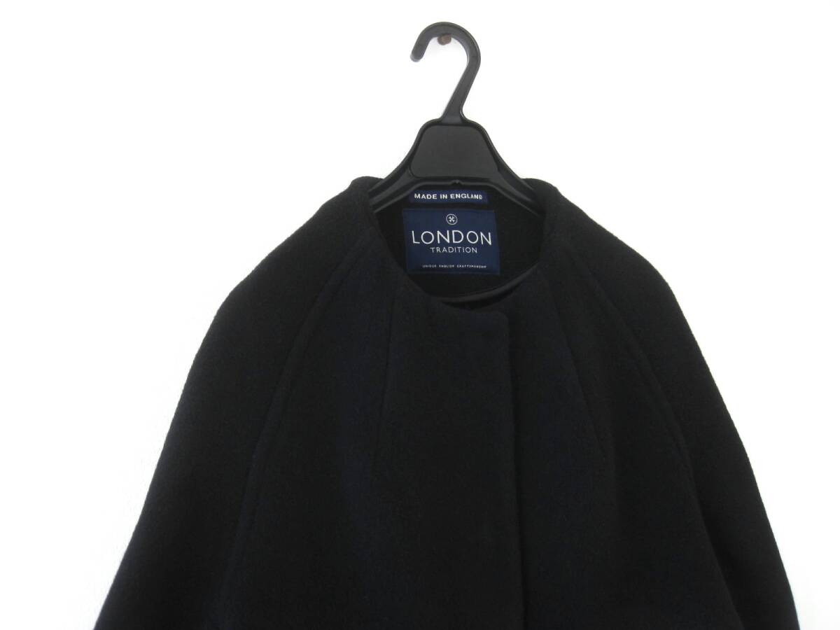 送料込☆イギリス製☆LONDON TRADITION☆ロングコート☆黒☆38☆ウール混☆ノーカラーコート☆ゆったり☆ロンドントラディション
